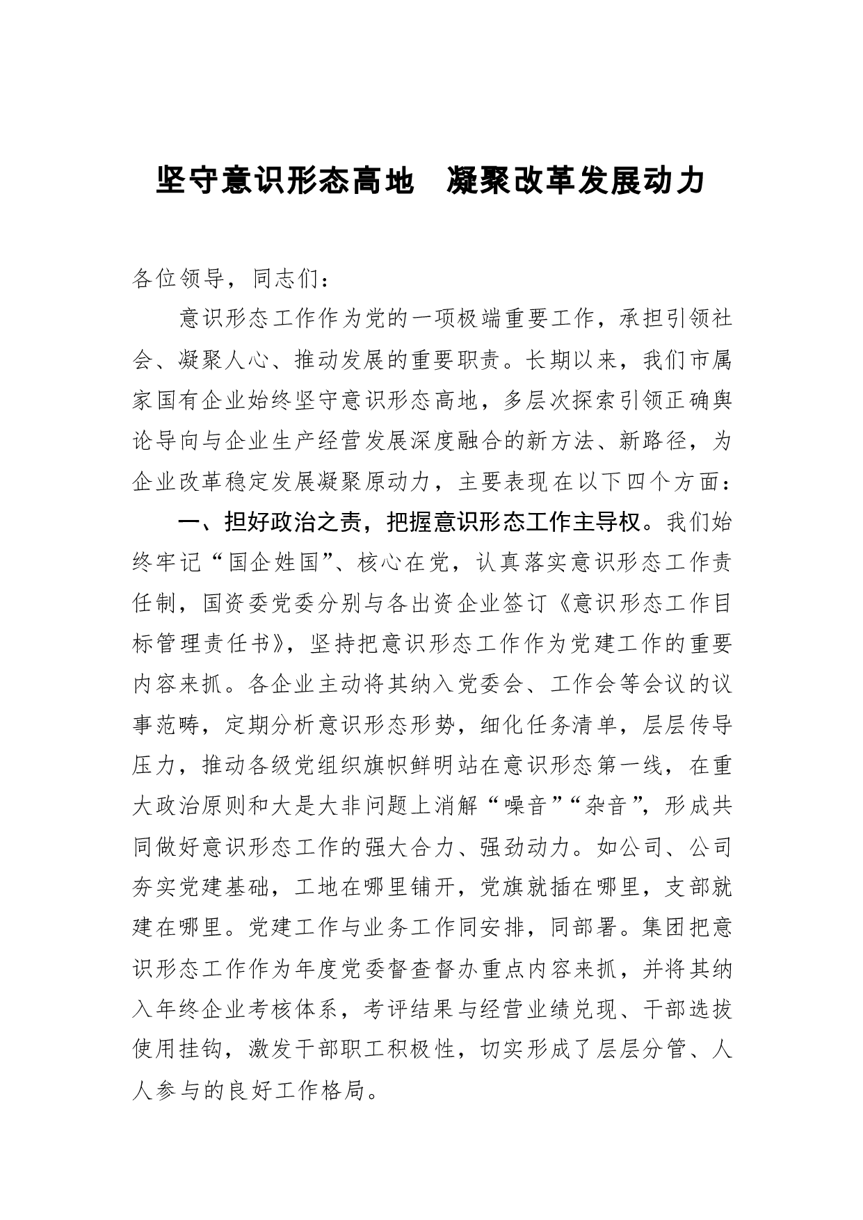 标题:坚守意识形态高地 凝聚改革发展动力