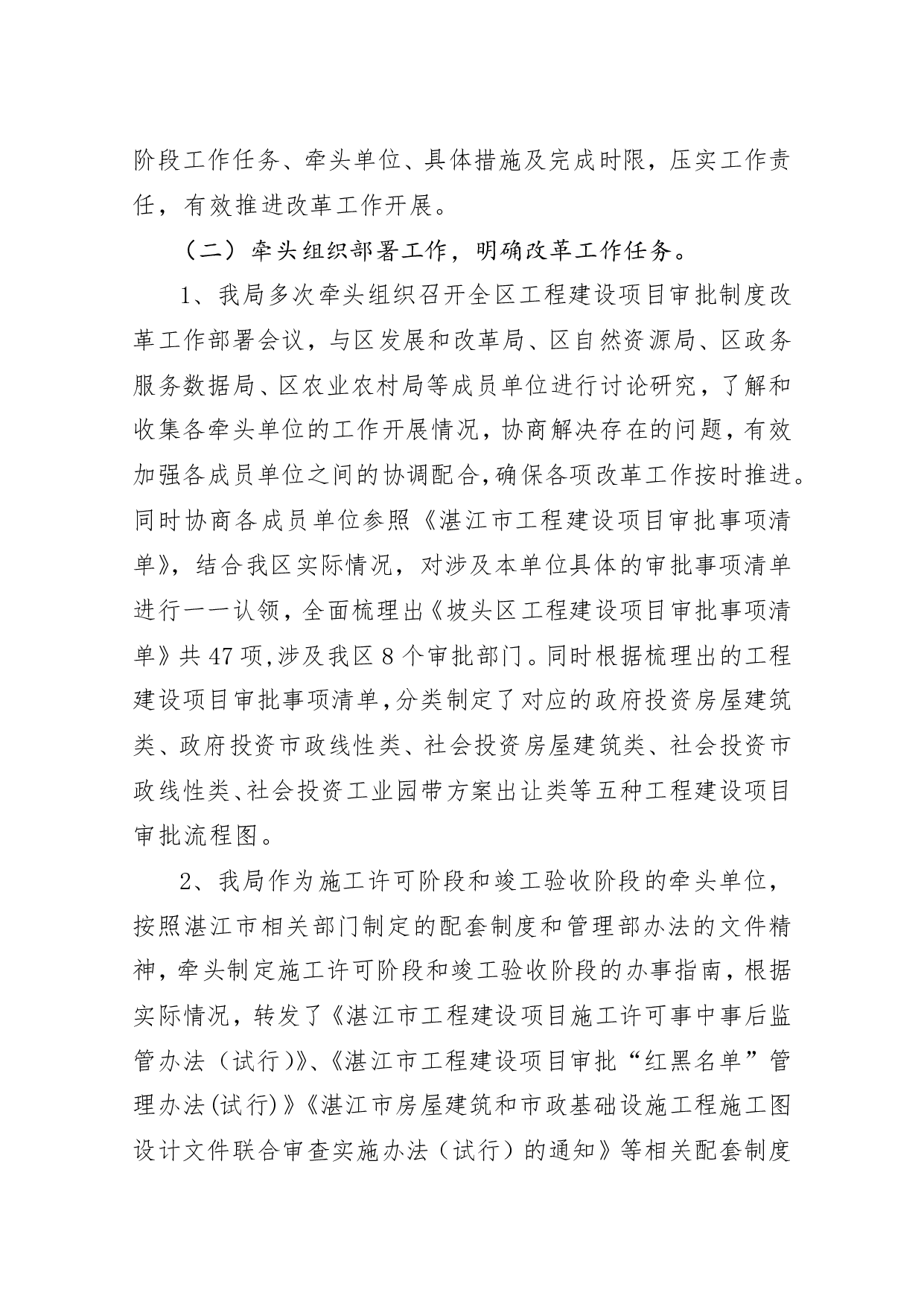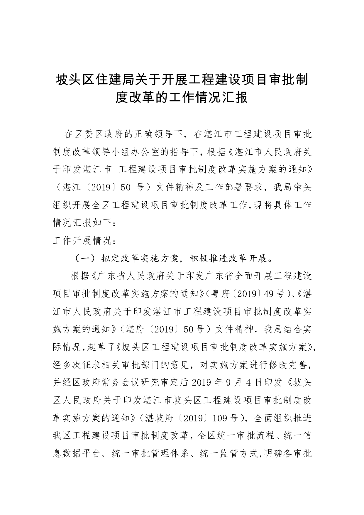 标题:坡头区住建局关于开展工程建设项目审批制度改革的工作情况汇报