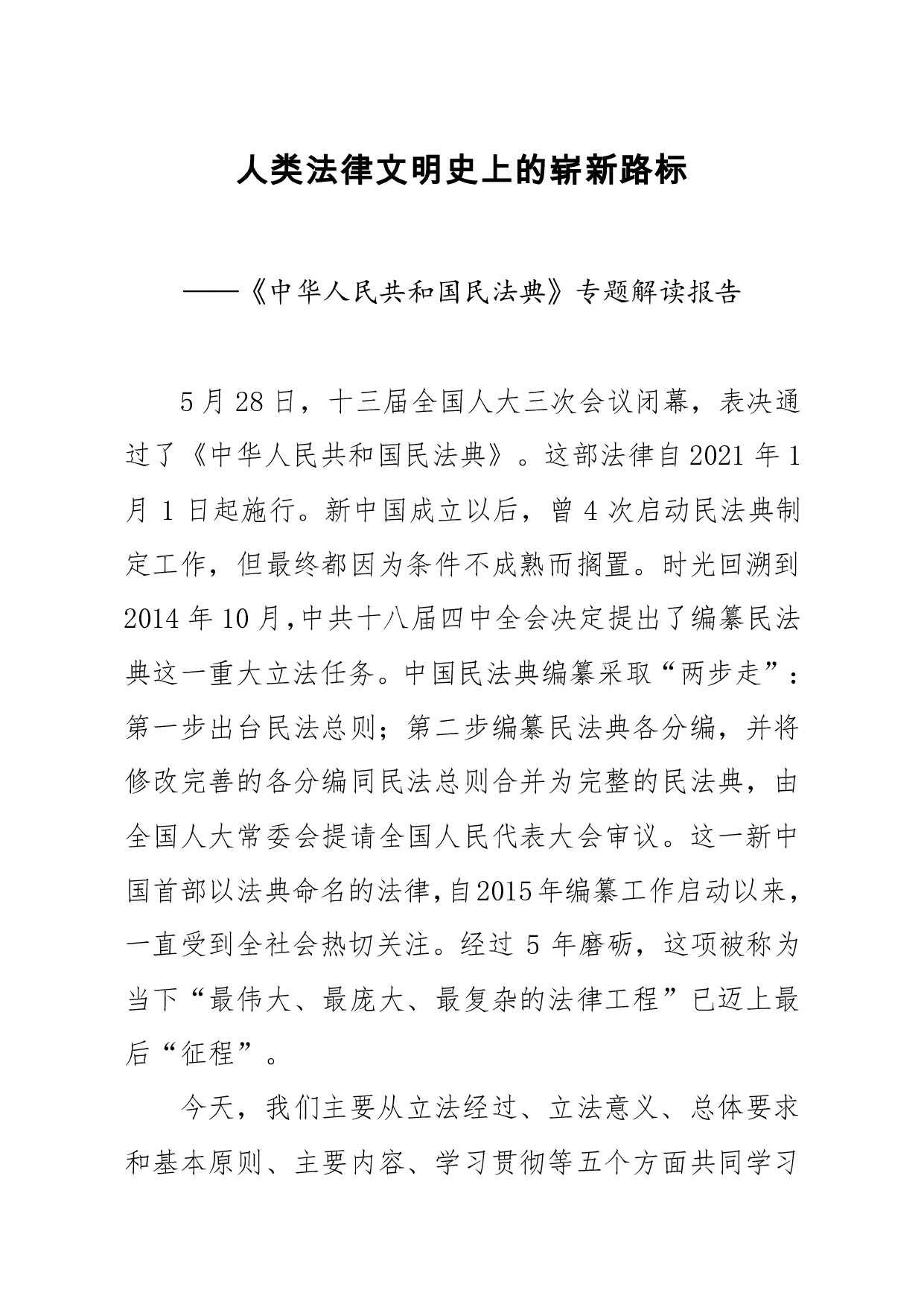 标题:中华人民共和国民法典专题解读报告