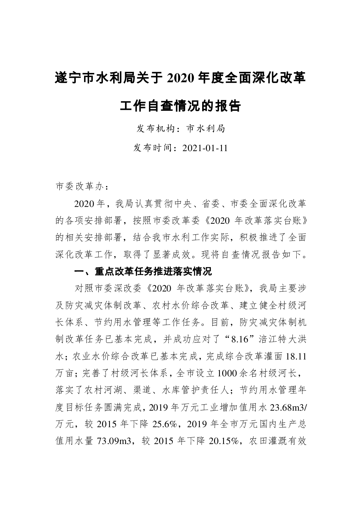 标题:遂宁市水利局关于2020年度全面深化改革工作自查情况的报告
