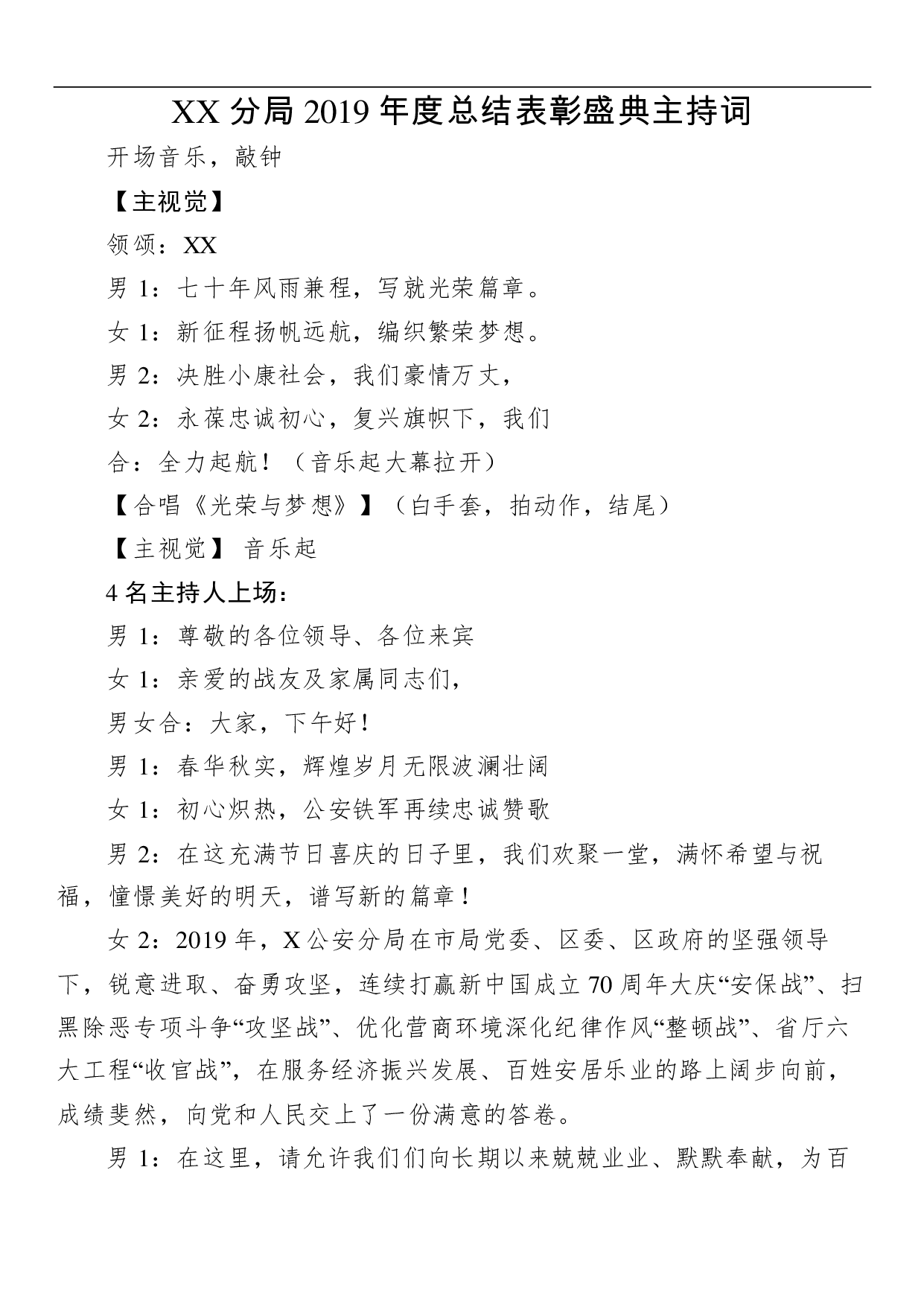 标题:-2019年终总结表彰盛典主持词