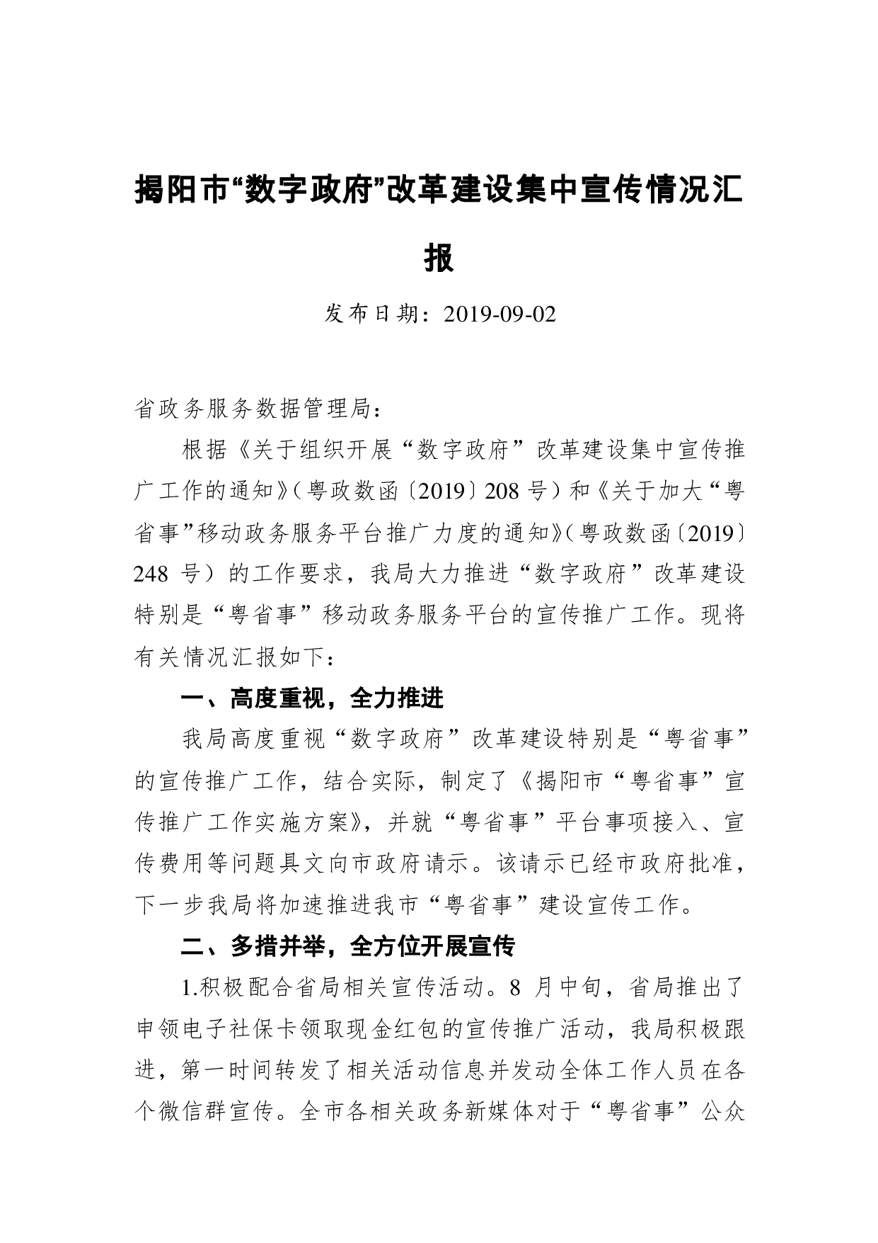 标题:揭阳市“数字政府”改革建设集中宣传情况汇报