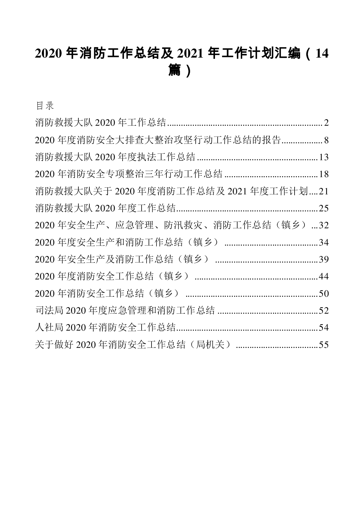 标题:2020年消防工作总结及2021年工作计划汇编14篇