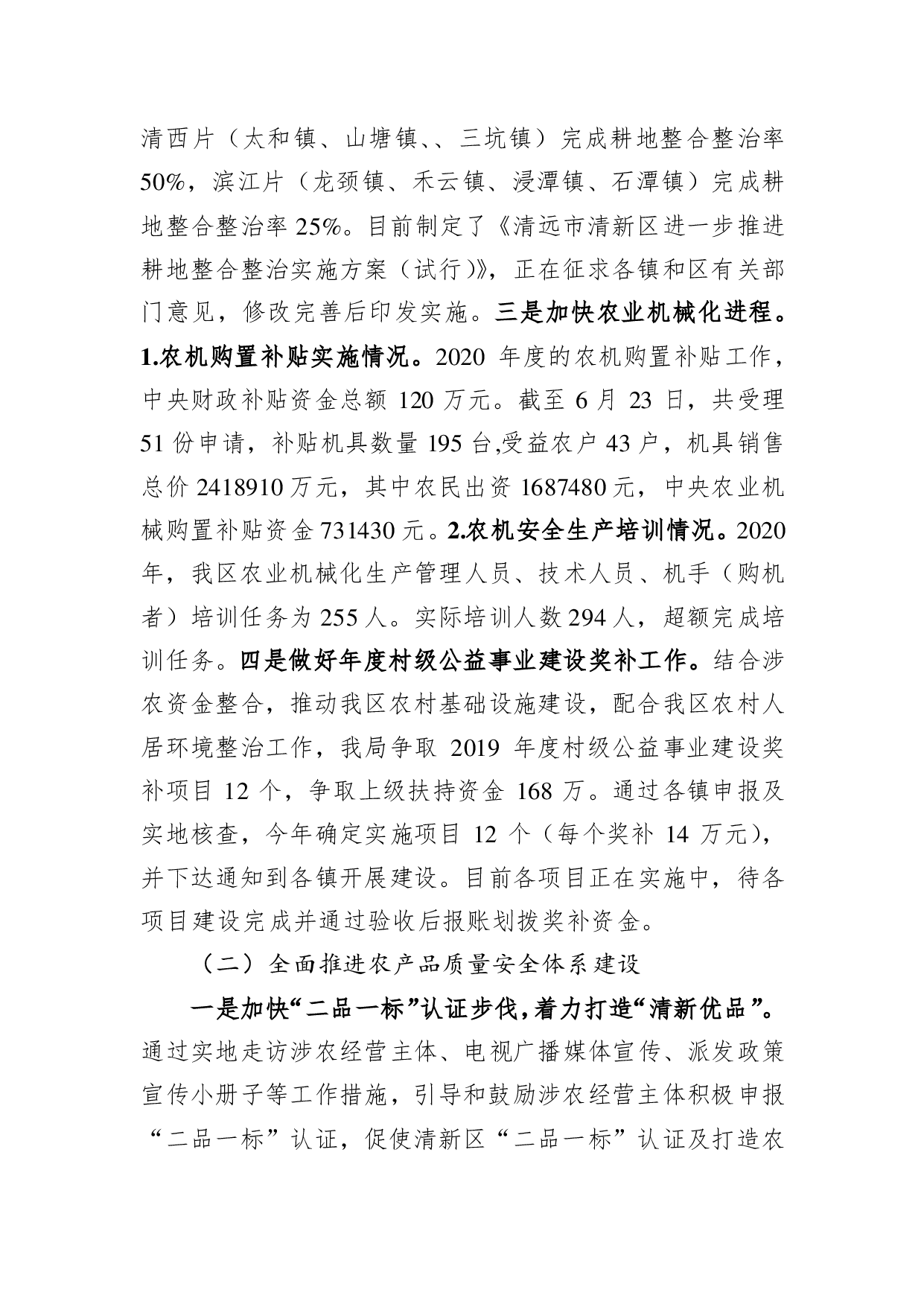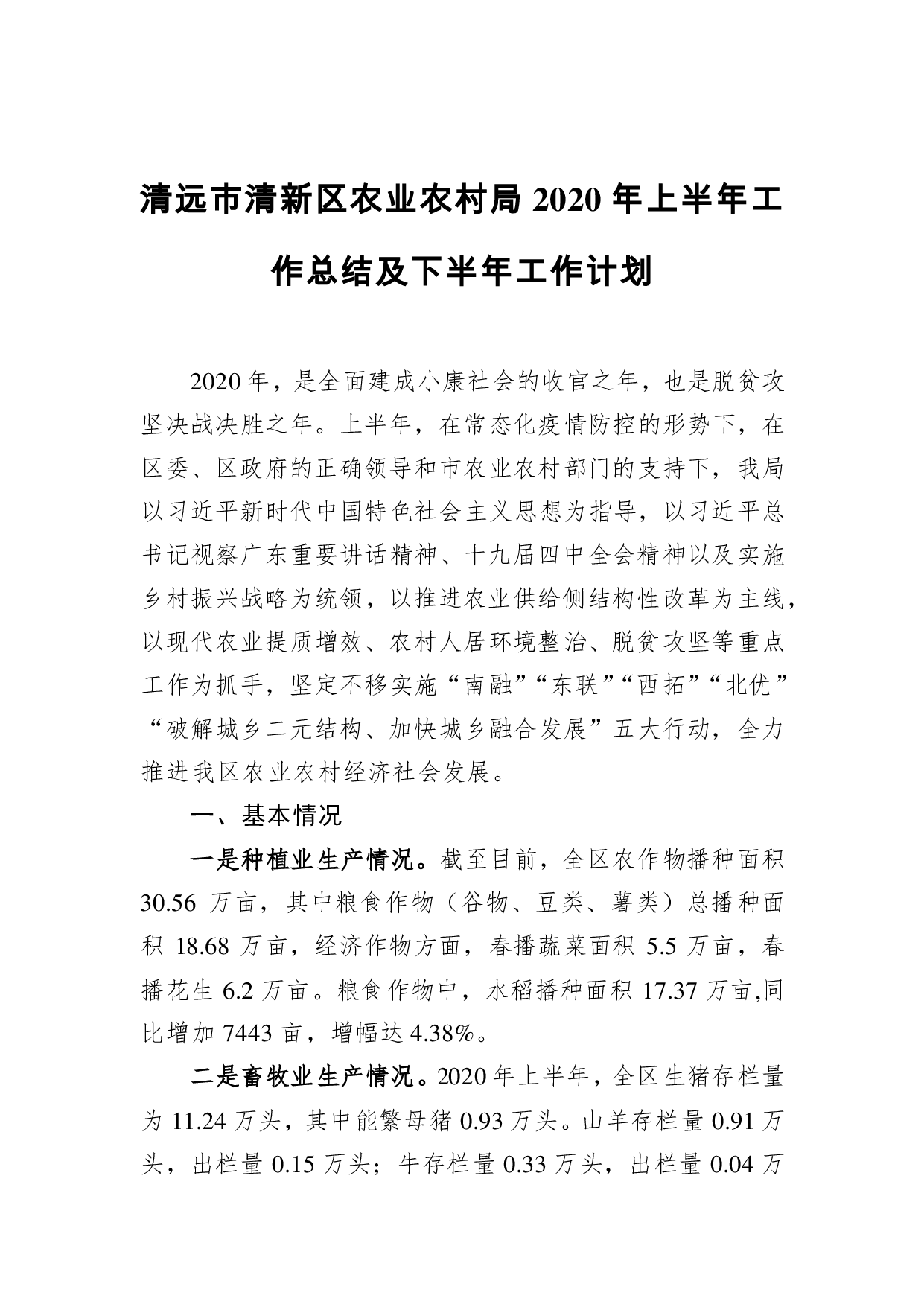 标题:清远市清新区农业农村局2020年上半年工作总结及下半年工作计划