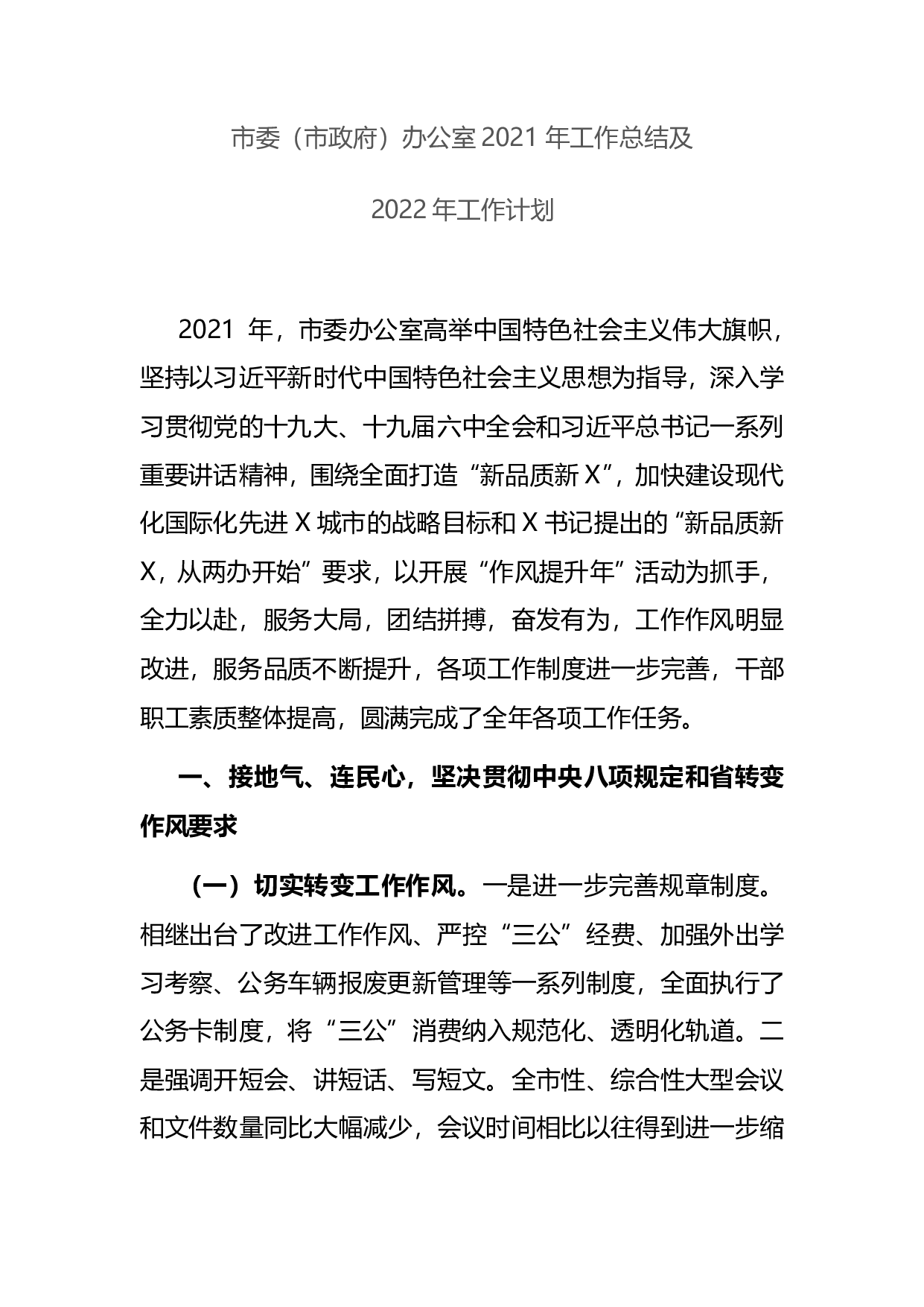 标题:市委(市政府)办公室2021年工作总结及2022年工作计划