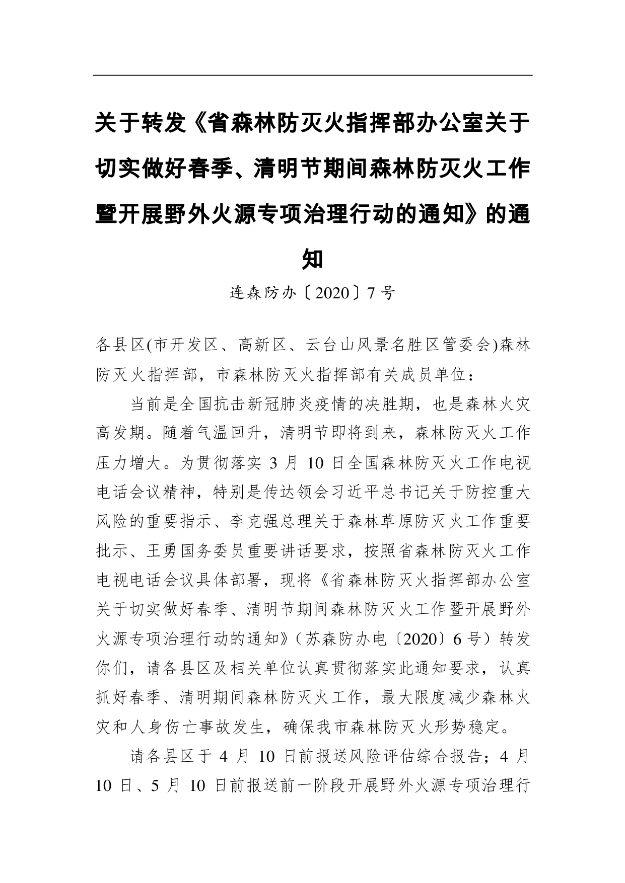标题:关于转发《省森林防灭火指挥部办公室关于切实做好春季、清明节期间森林防灭火工作暨开展