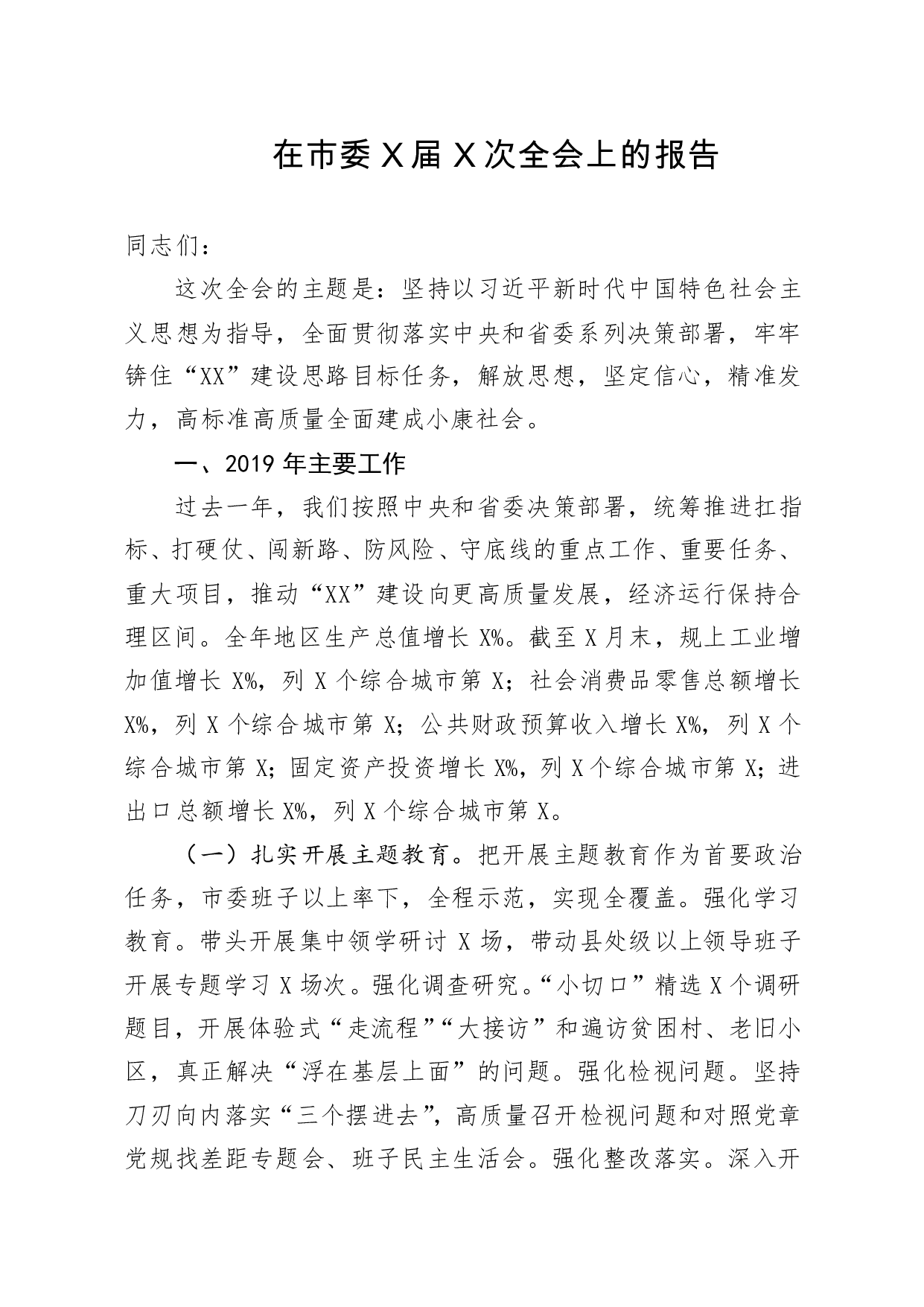标题:在市委X届X次全会上的报告