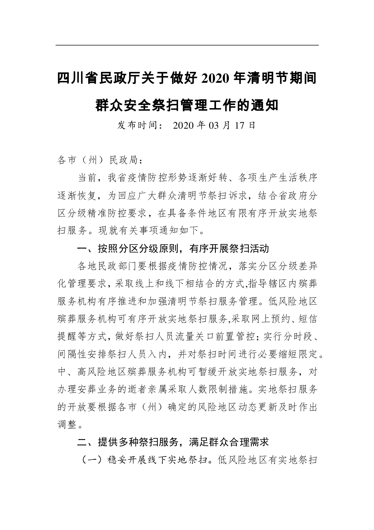 标题:四川省民政厅关于做好2020年清明节期间群众安全祭扫管理工作的通知_转换