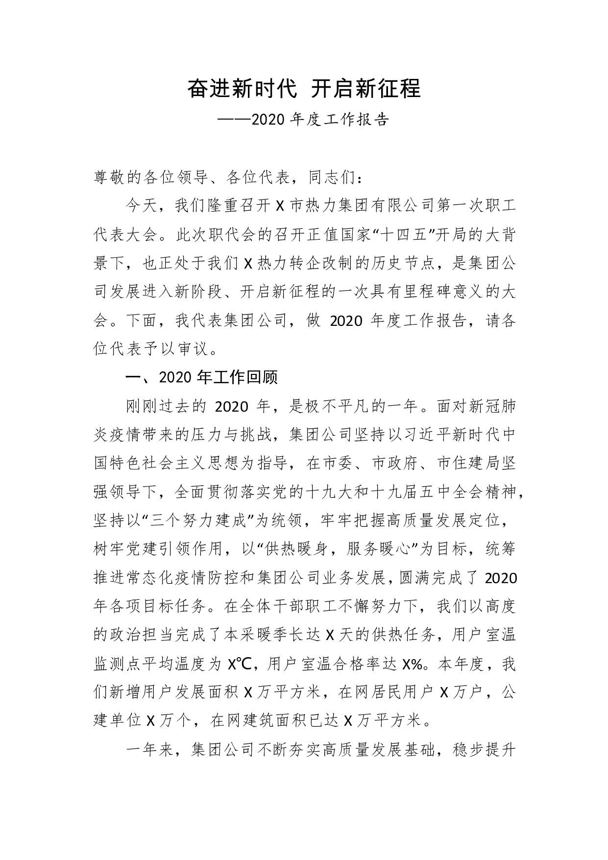 标题:2020年度工作报告