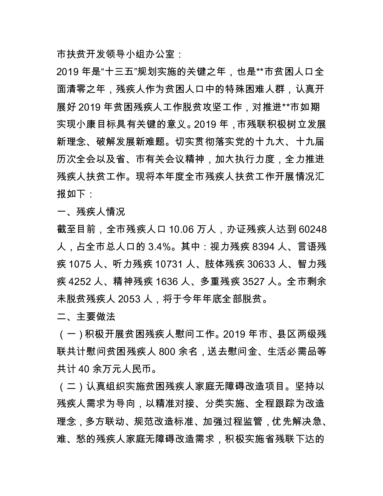 标题:残疾人联合会2019年精准扶贫工作汇报