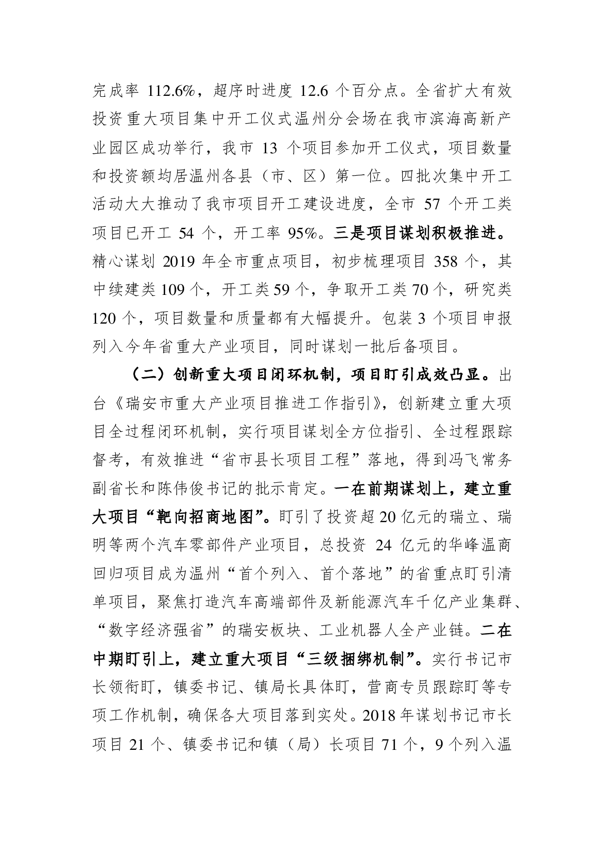 标题:瑞安市发展和改革局 2018年工作总结和2019年工作思路