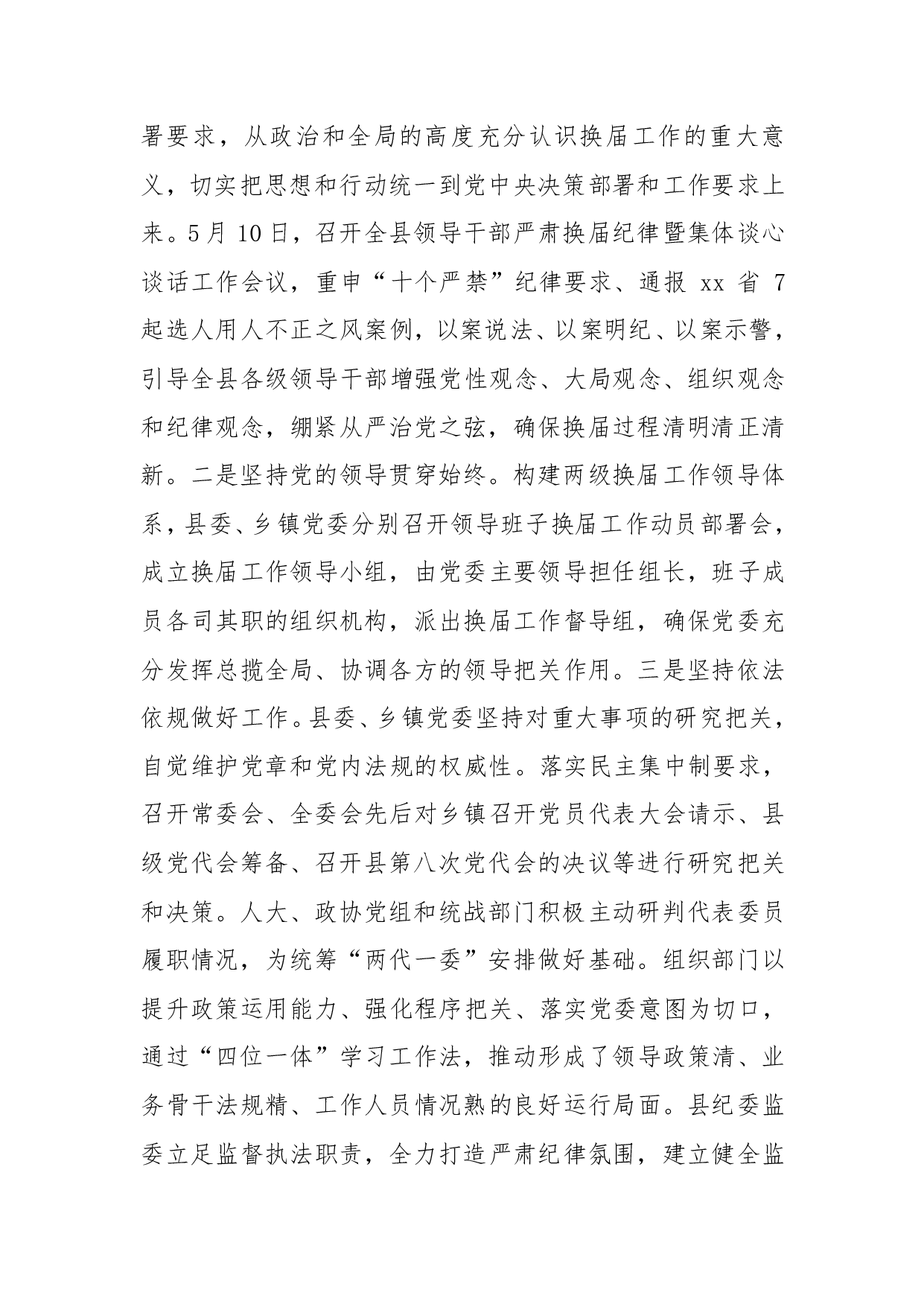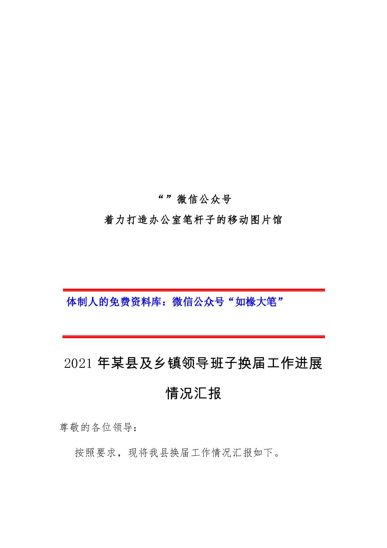 标题:2021年某县及乡镇领导班子换届工作进展情况汇报