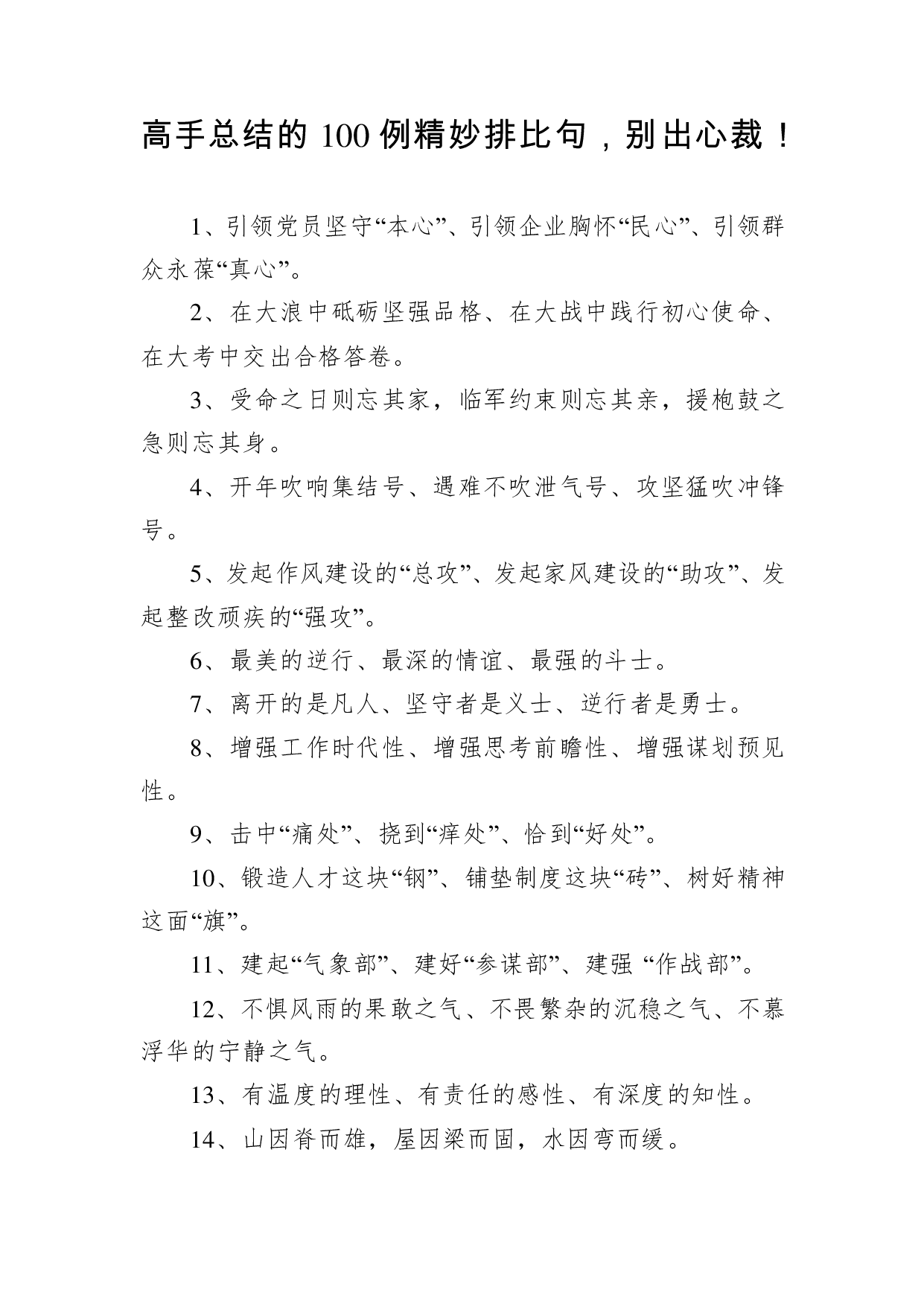 标题:高手总结的100例精妙排比句