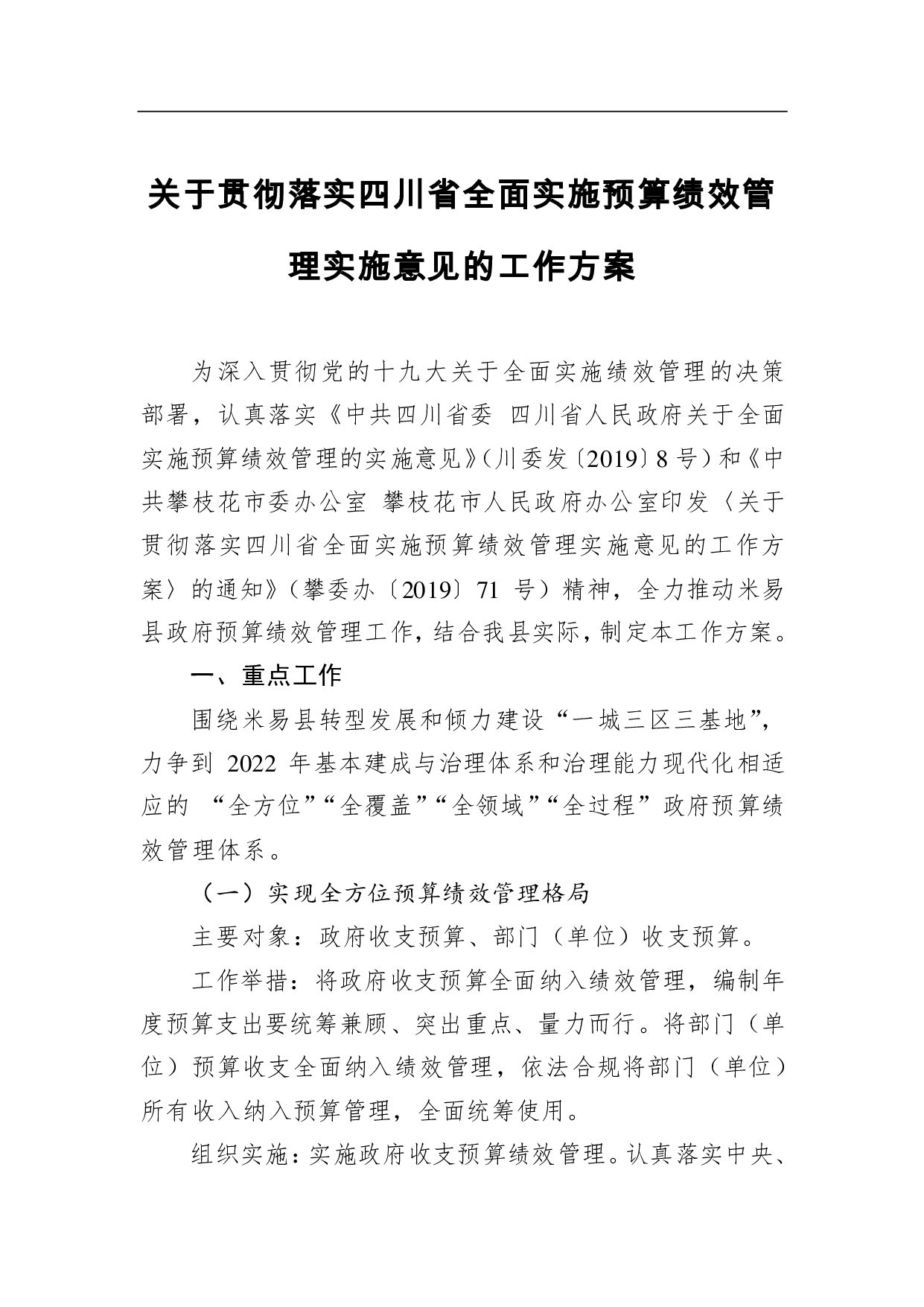 标题:关于贯彻落实四川省全面实施预算绩效管理实施意见的工作方案_转换