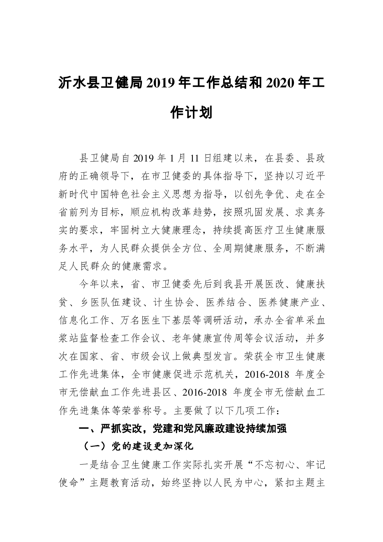 标题:沂水县卫健局2019年工作总结和2020年工作计划