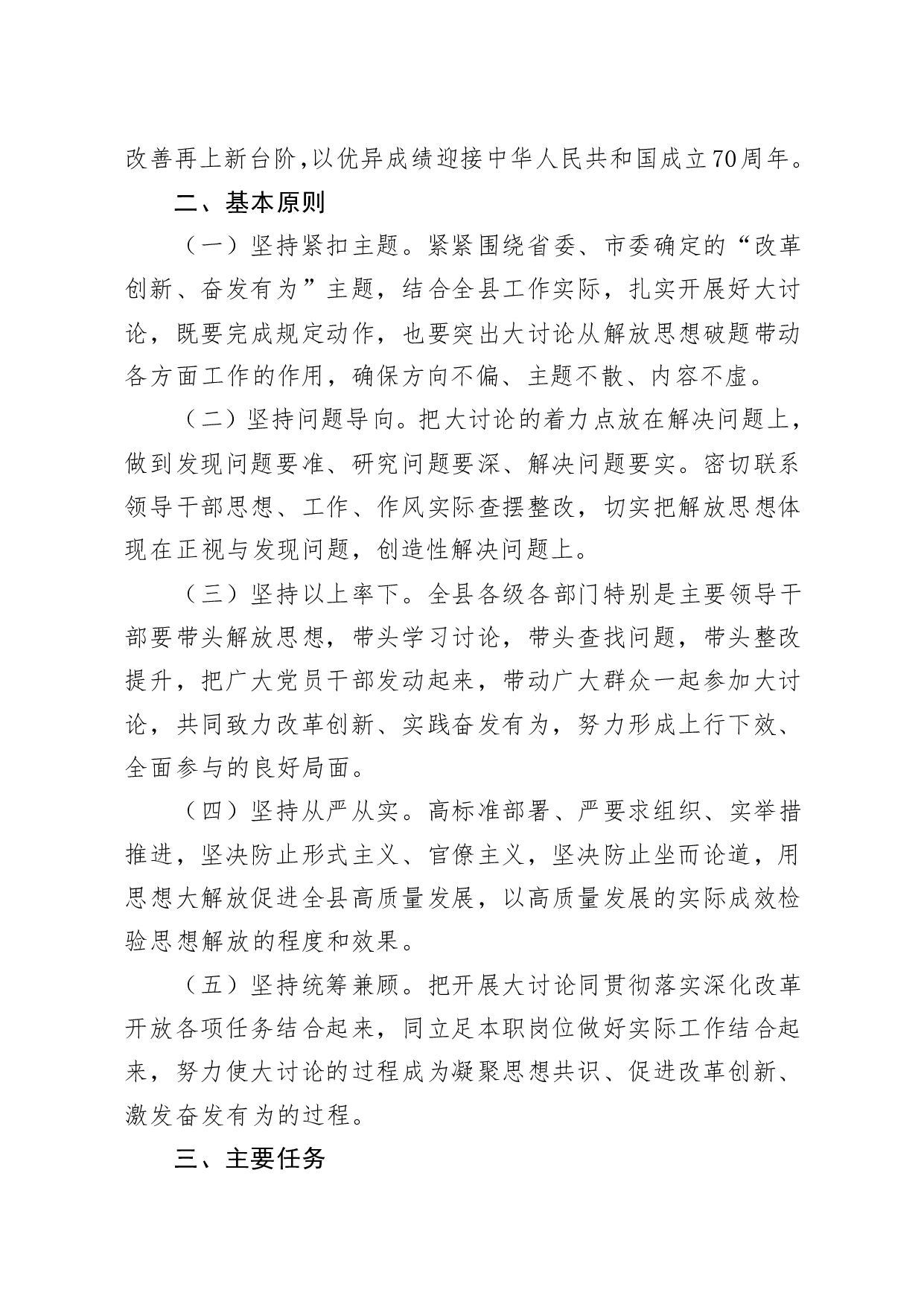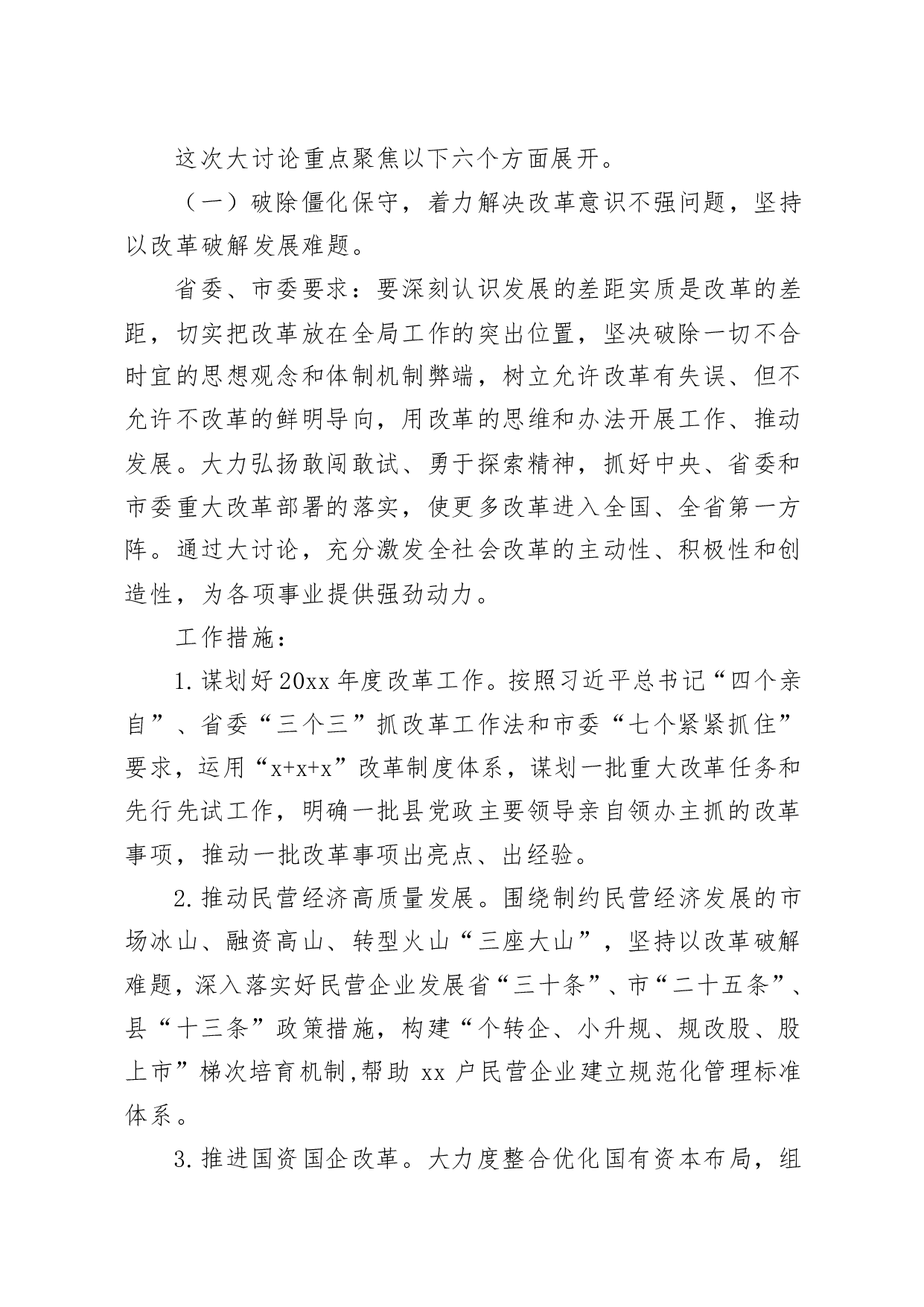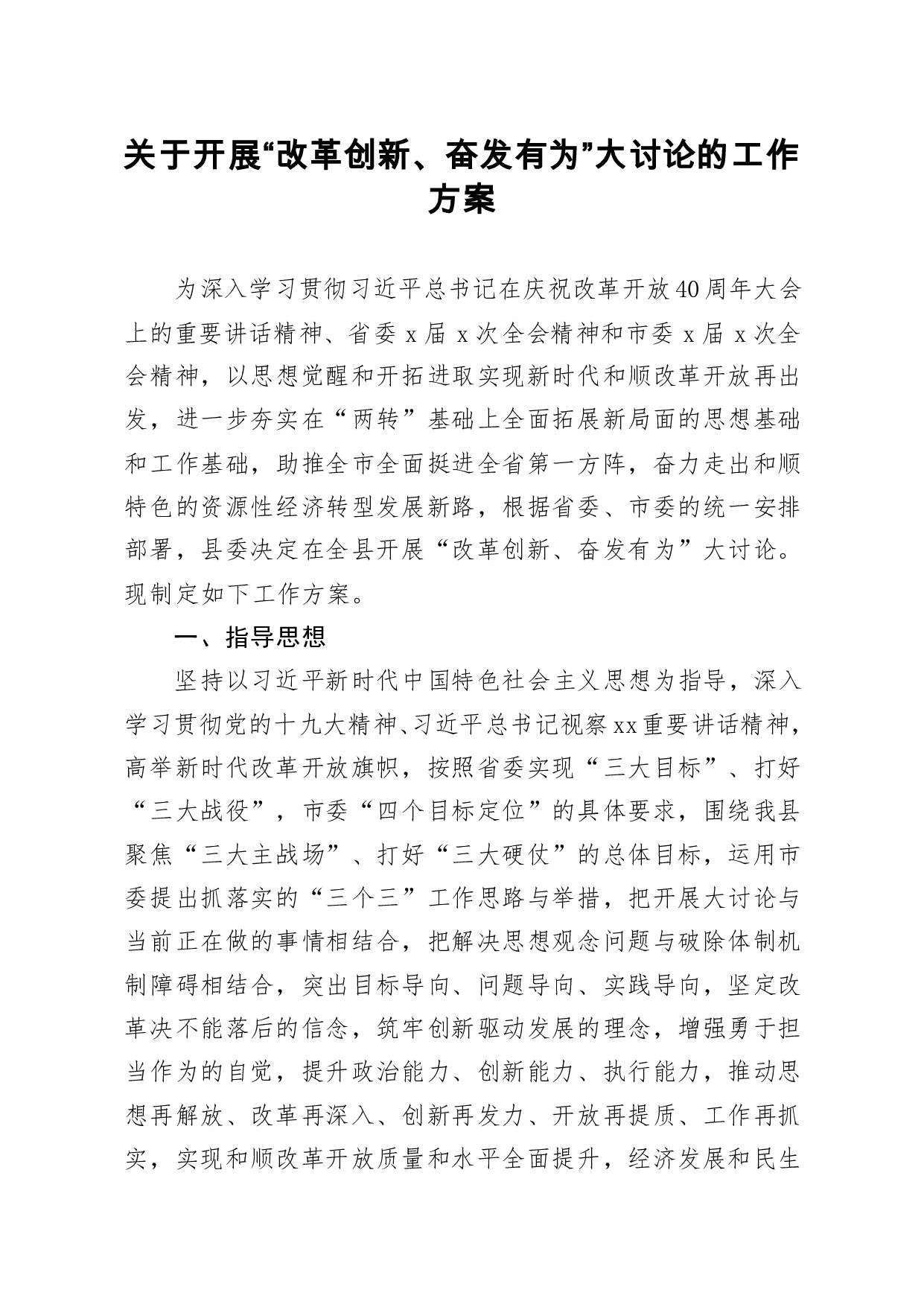 标题:关于开展改革创新奋发有为大讨论的工作方案