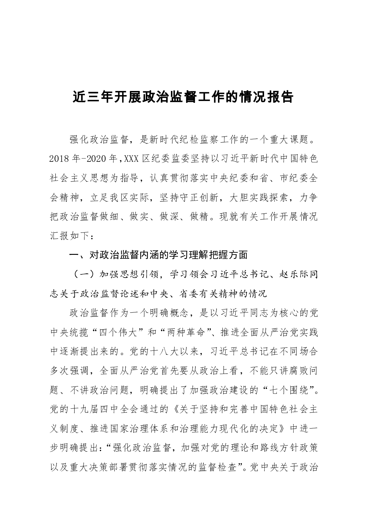 标题:2020近三年开展政治监督工作的情况报告