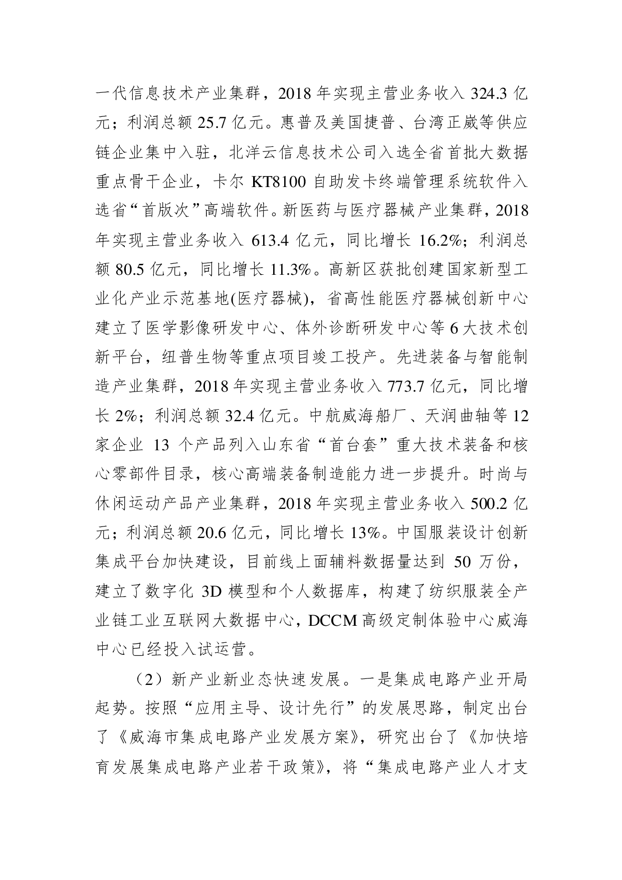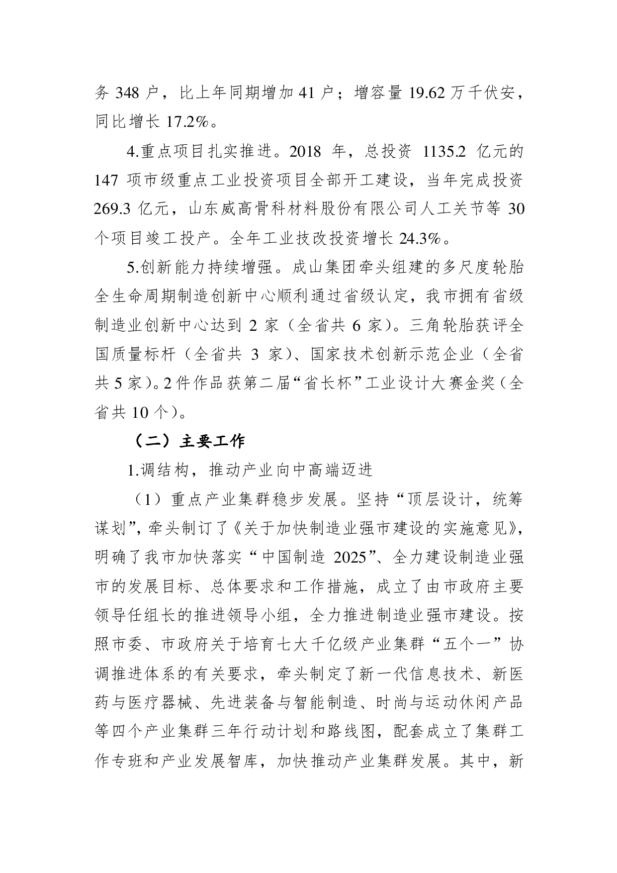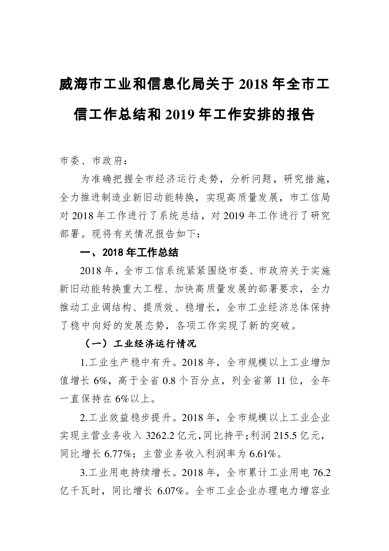 标题:威海市工业和信息化局关于2018年全市工信工作总结和2019年工作安排的报告