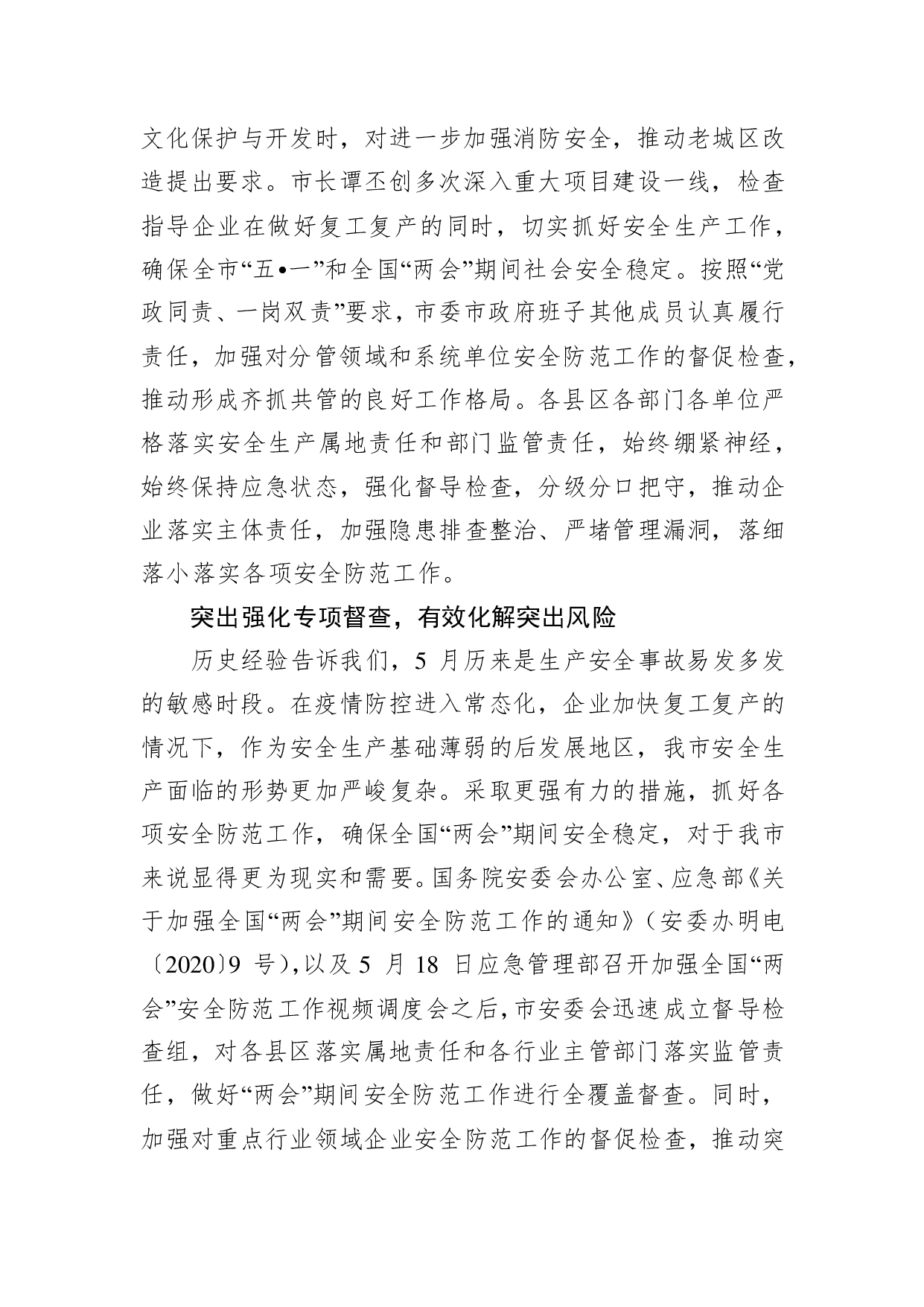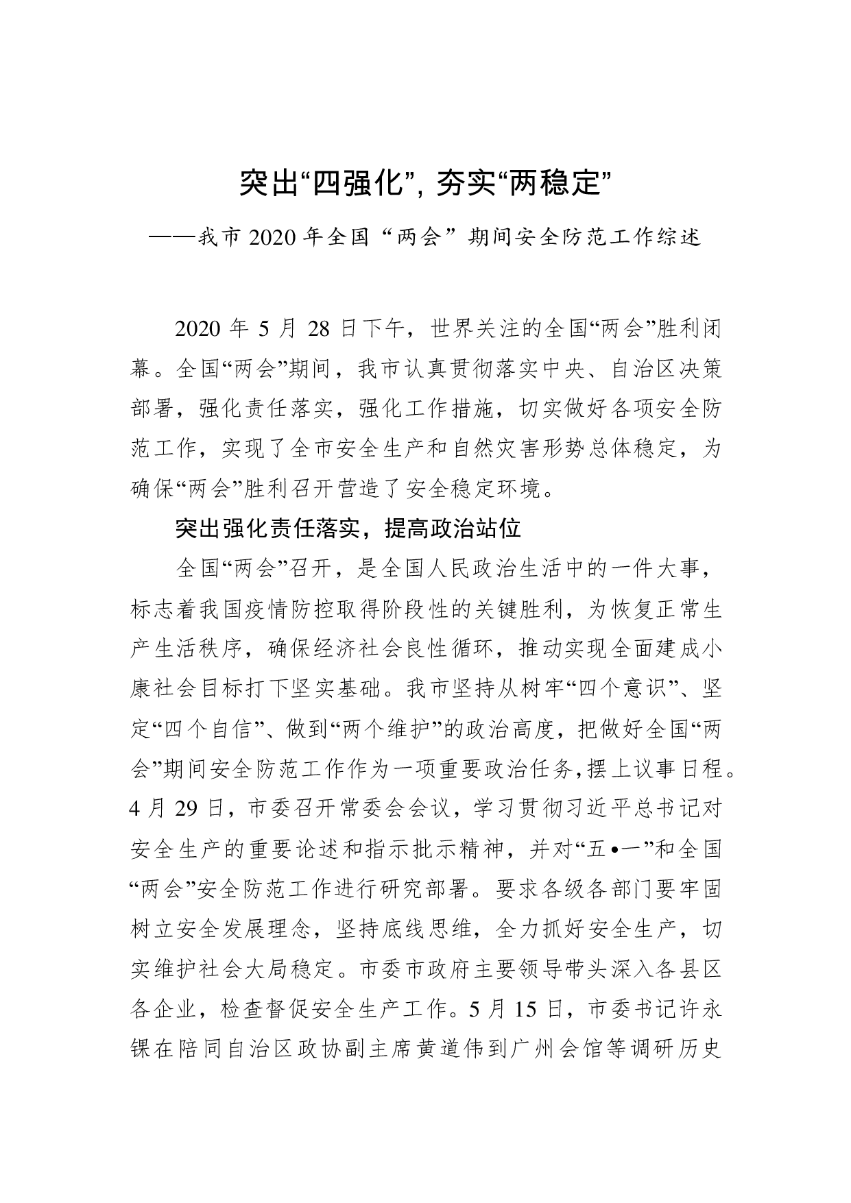 标题:突出“四强化”,夯实“两稳定”——我市2020年全国“两会”期间安全防范工作综述