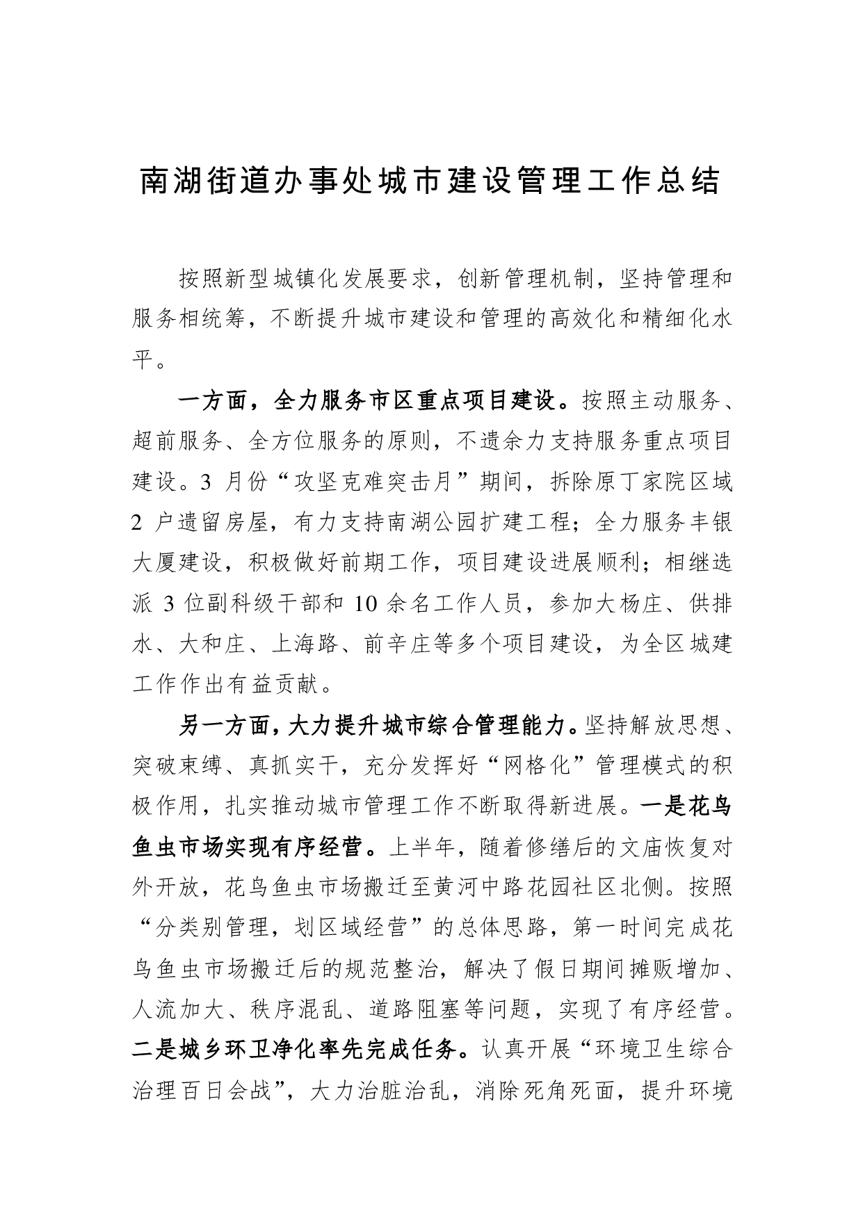 标题:南湖街道办事处城市建设管理工作总结