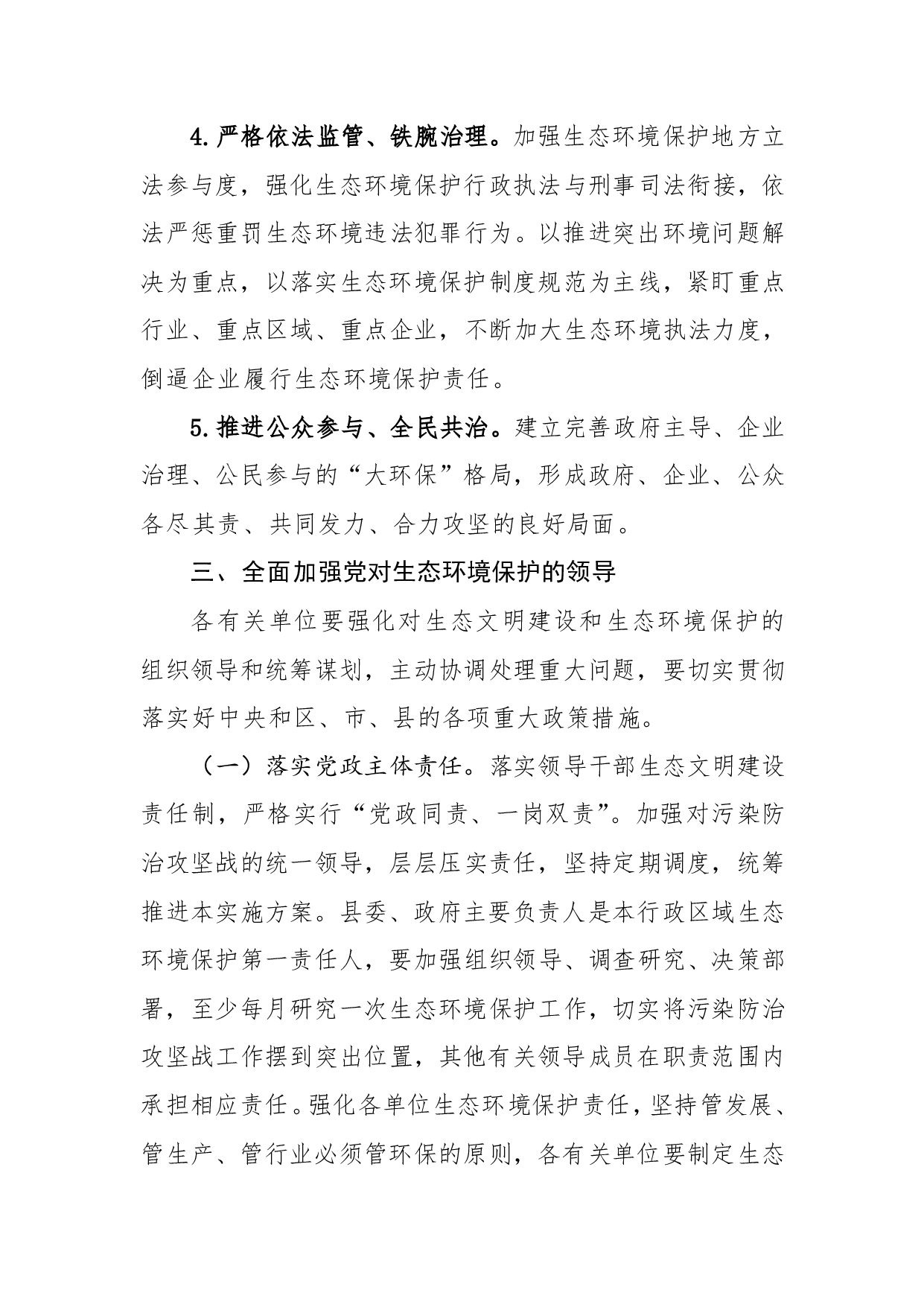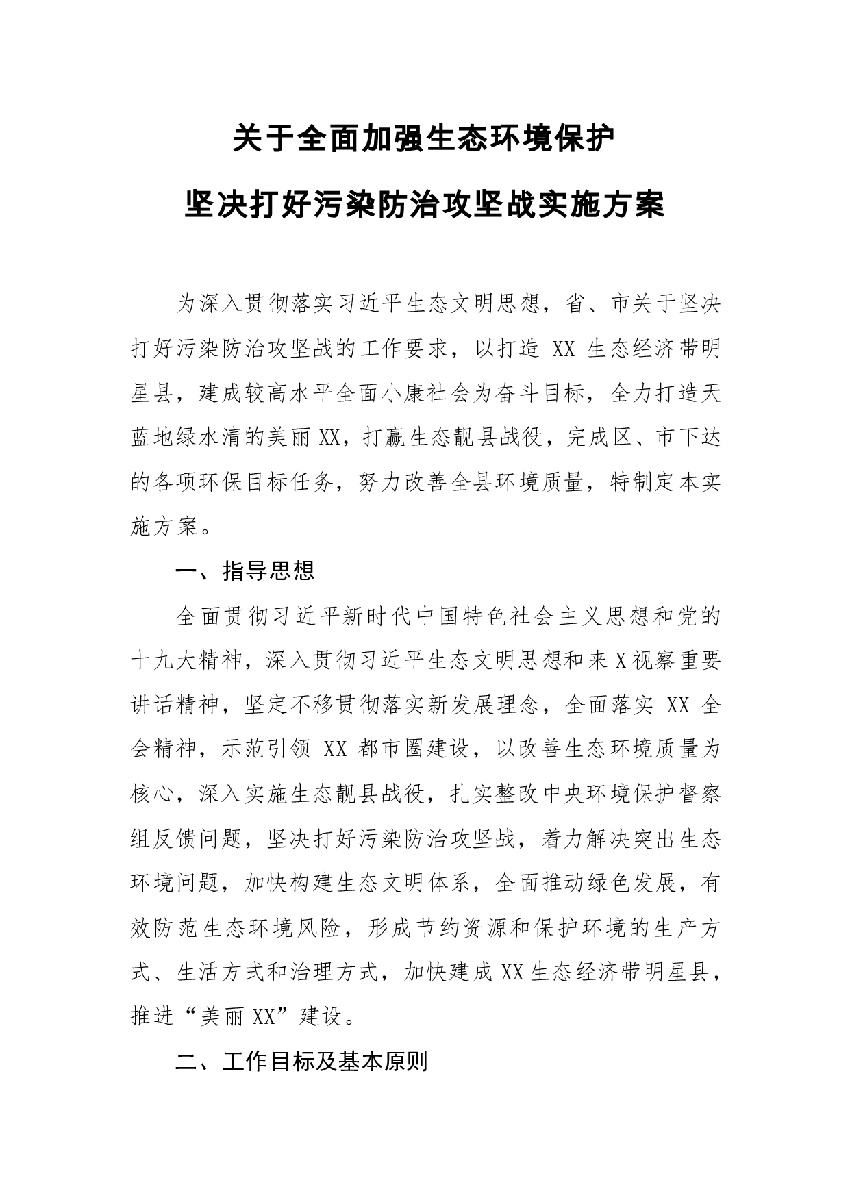 标题:关于全面加强生态环境保护坚决打好污染防治攻坚战实施方案