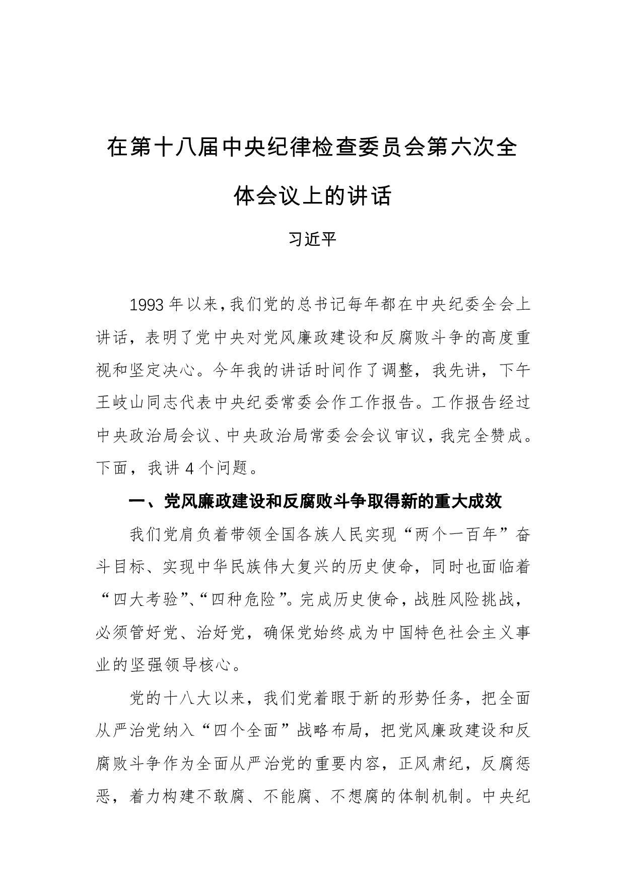 标题:习近平:在中纪委第六次全体会议上的讲话