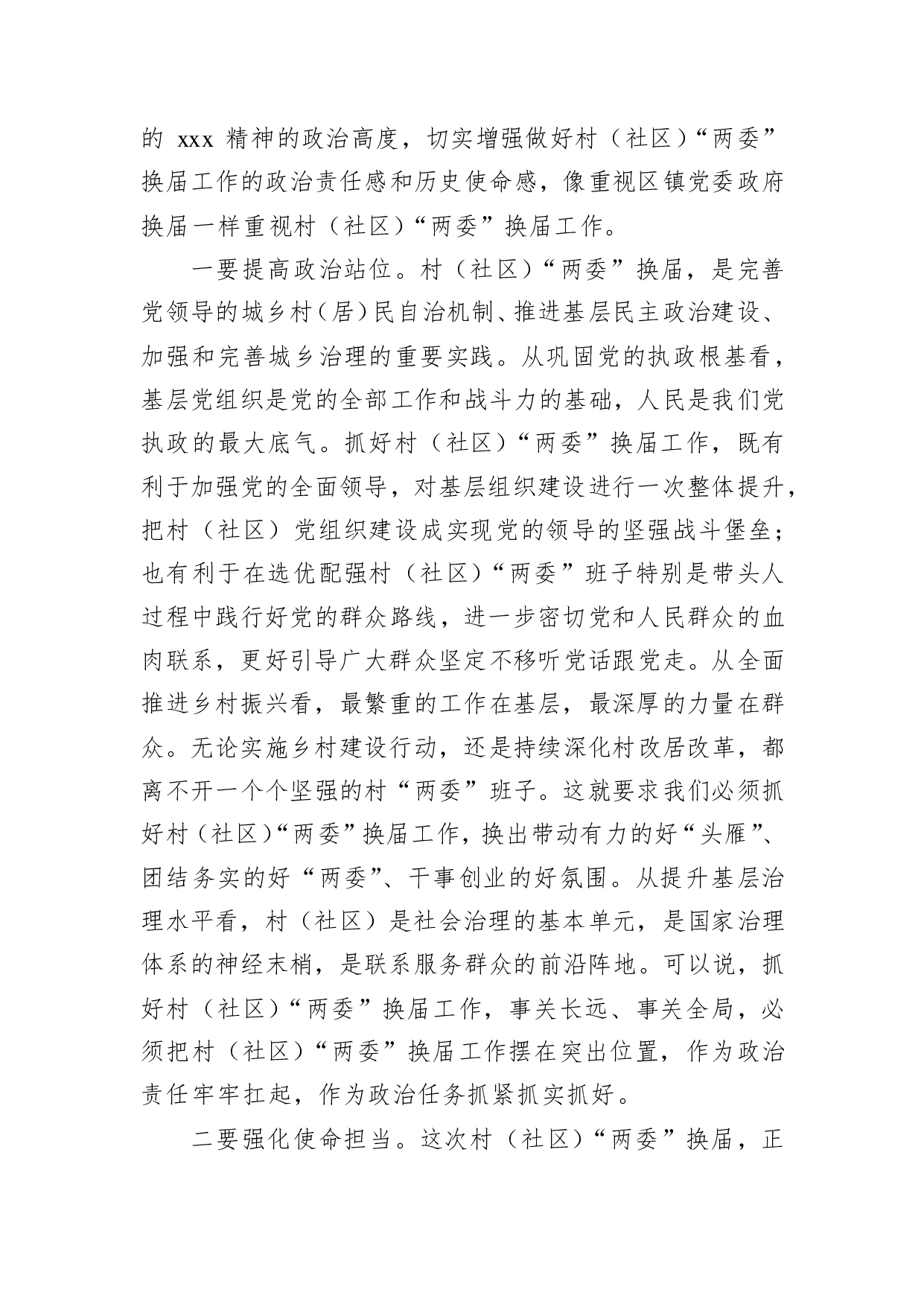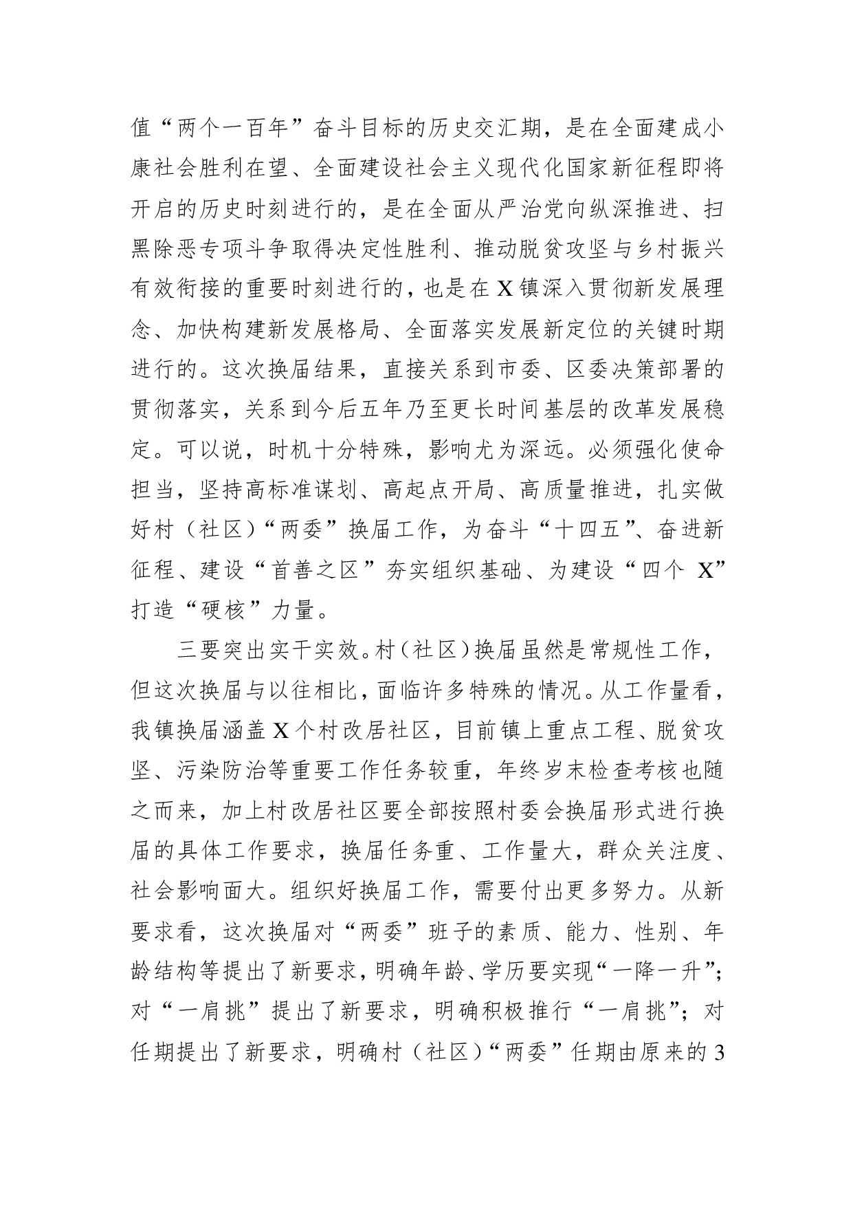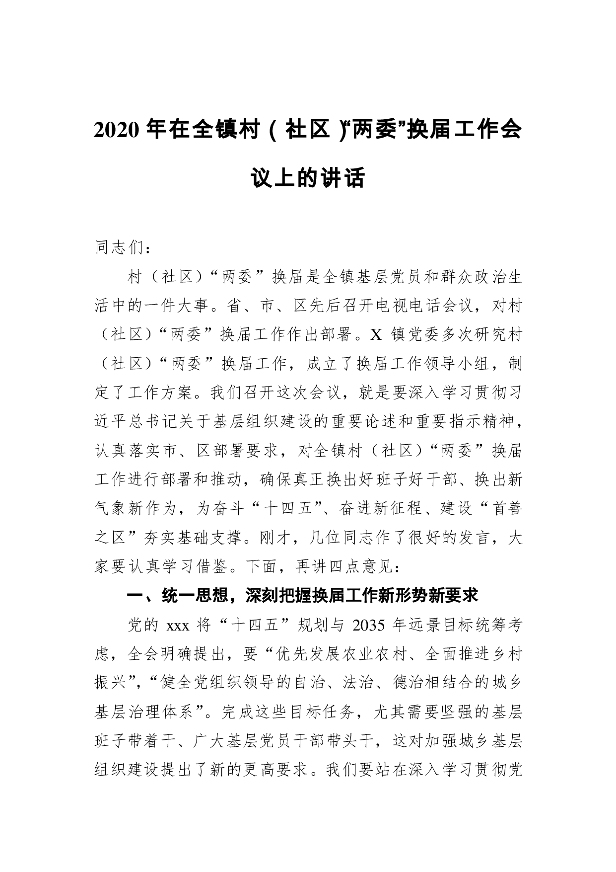标题:2020年在全镇村(社区)“两委”换届工作会议上的讲话