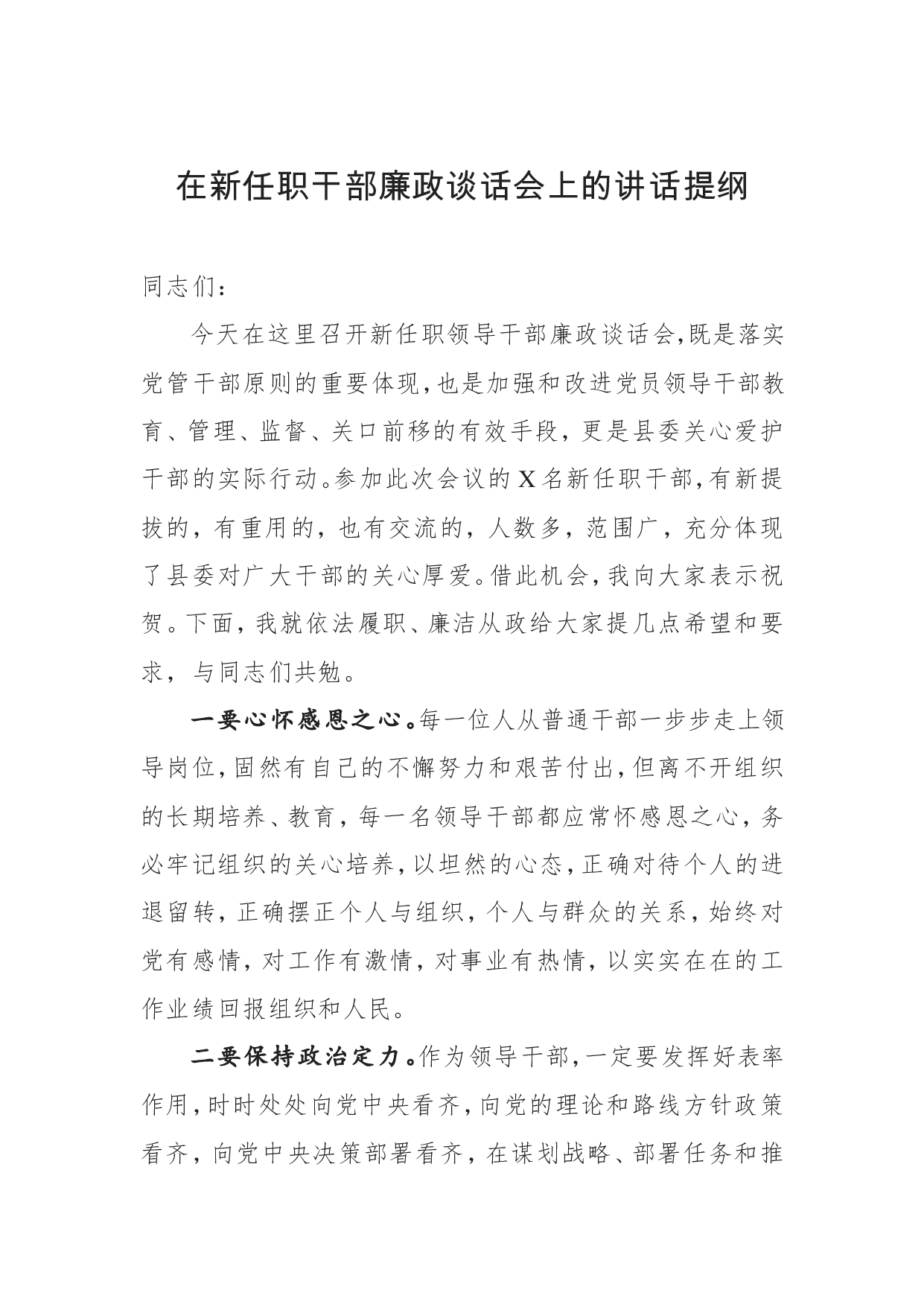 标题:在新任职干部廉政谈话会上的讲话提纲