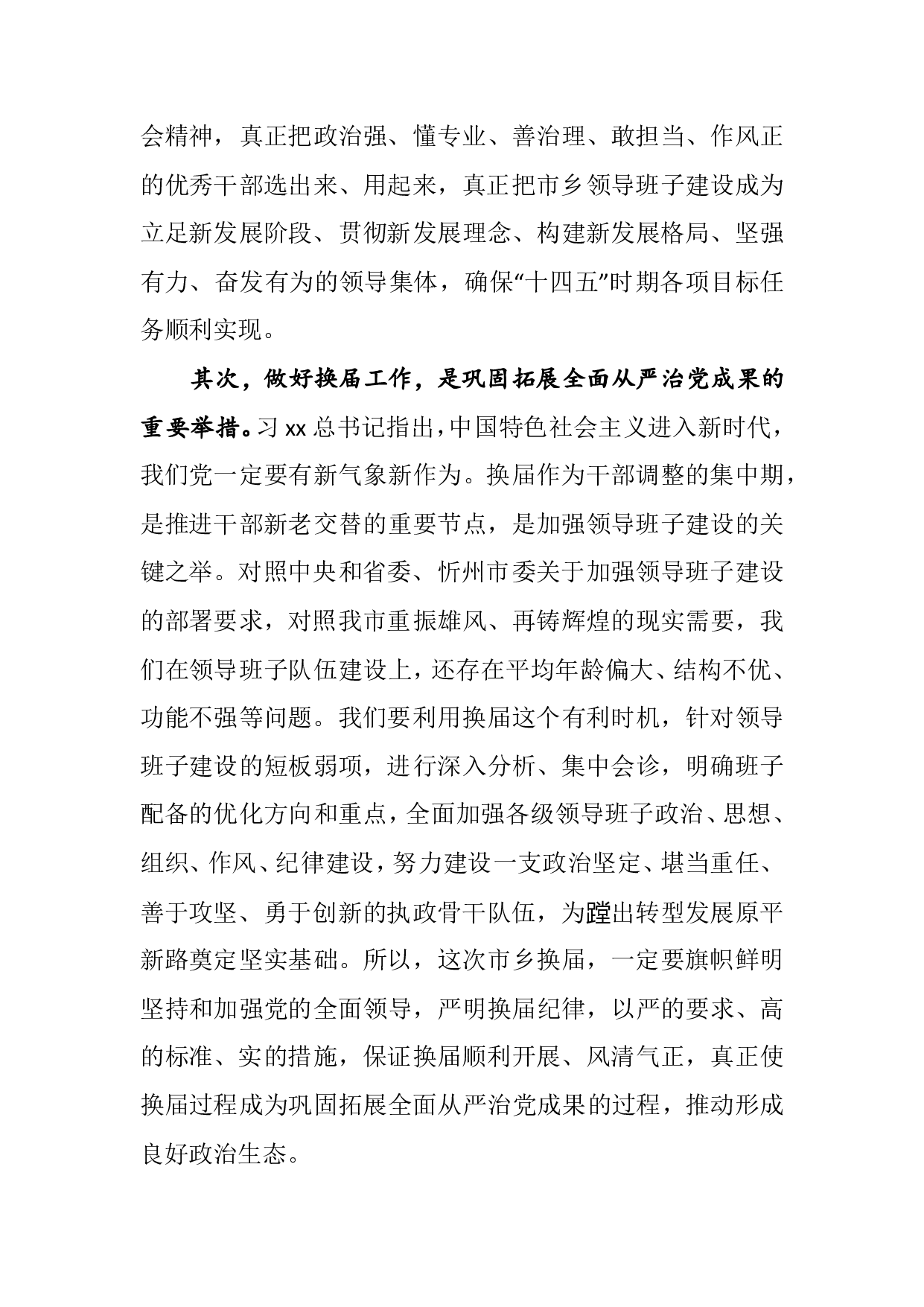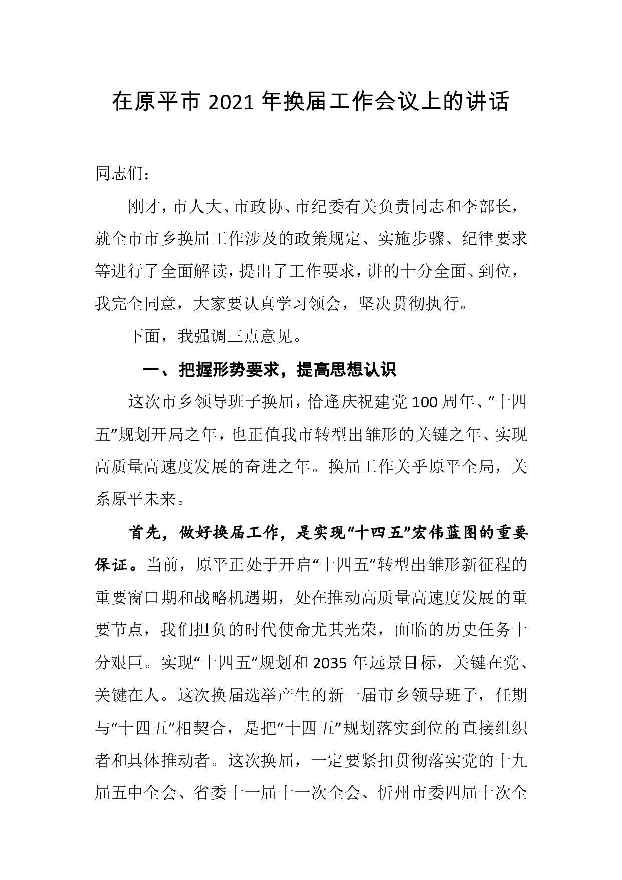 标题:在原平市2021年换届工作会议上的讲话
