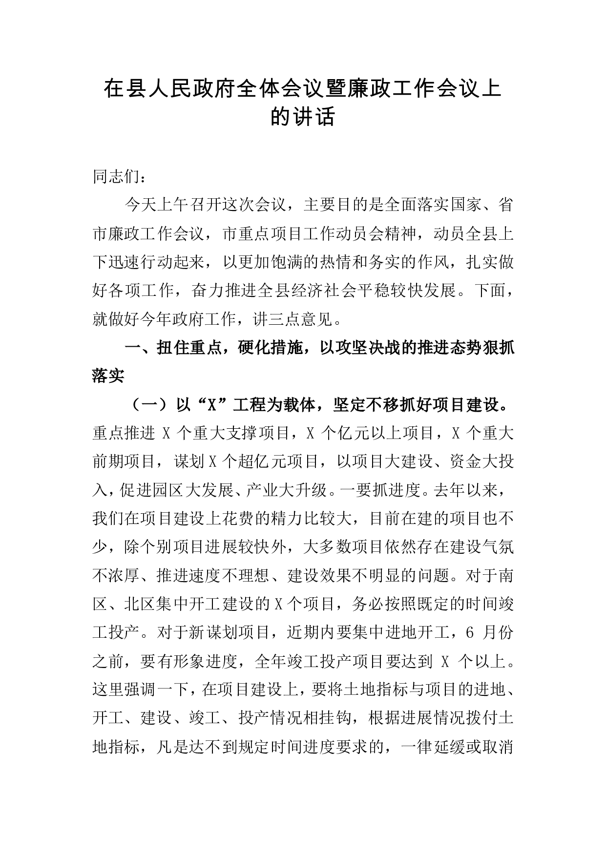 标题:在县人民政府全体会议暨廉政工作会议上的讲话