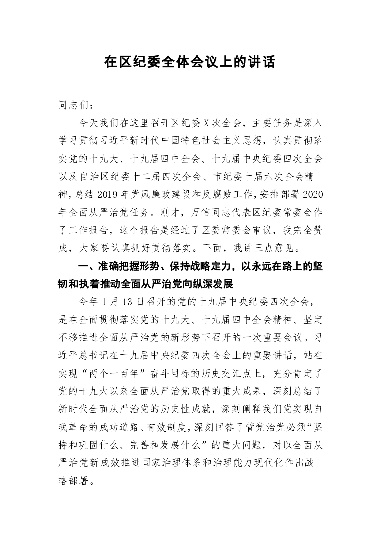 标题:笔友分享在区纪委全体会议上的讲话
