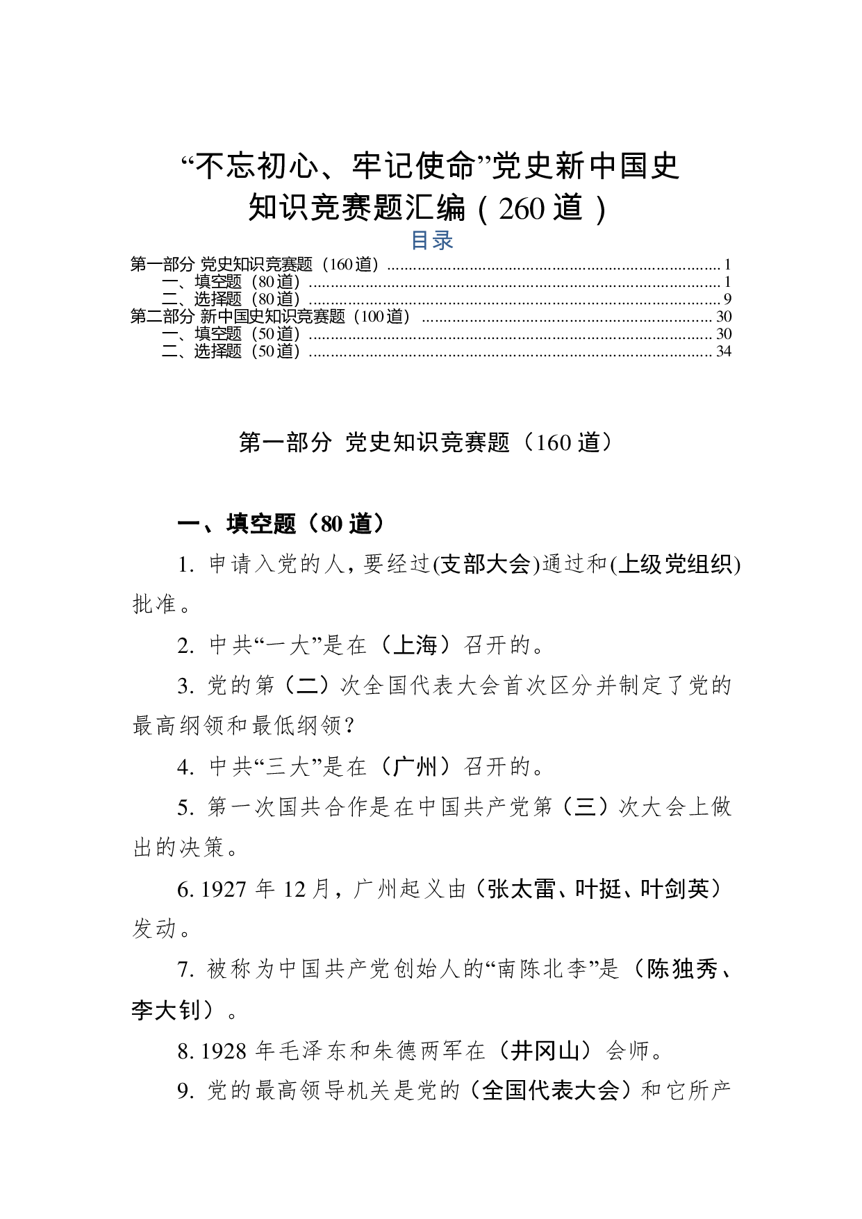 标题:【写作素材】不忘初心牢记使命党史新中国史知识竞赛题汇编
