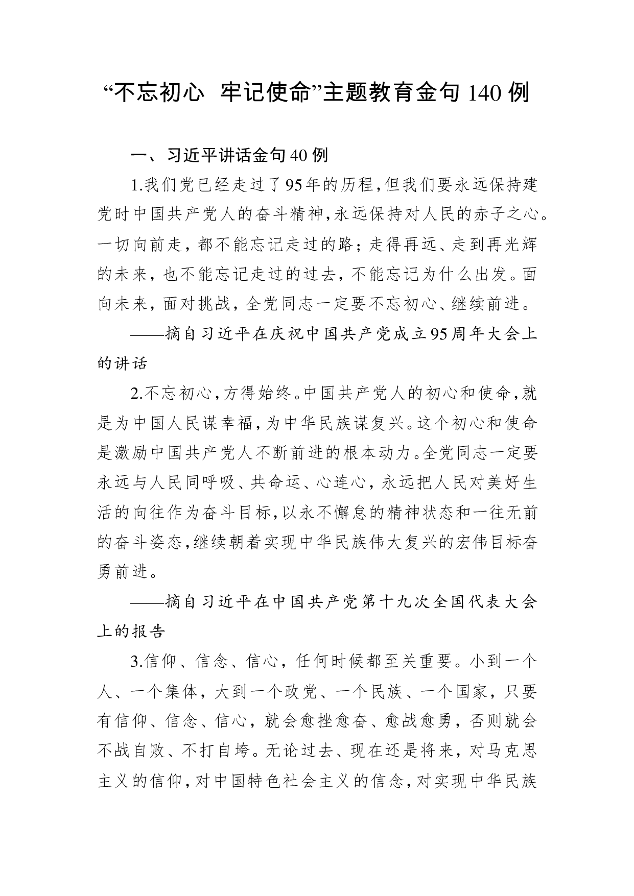 标题:【写作素材】不忘初心牢记使命主题教育金句140例