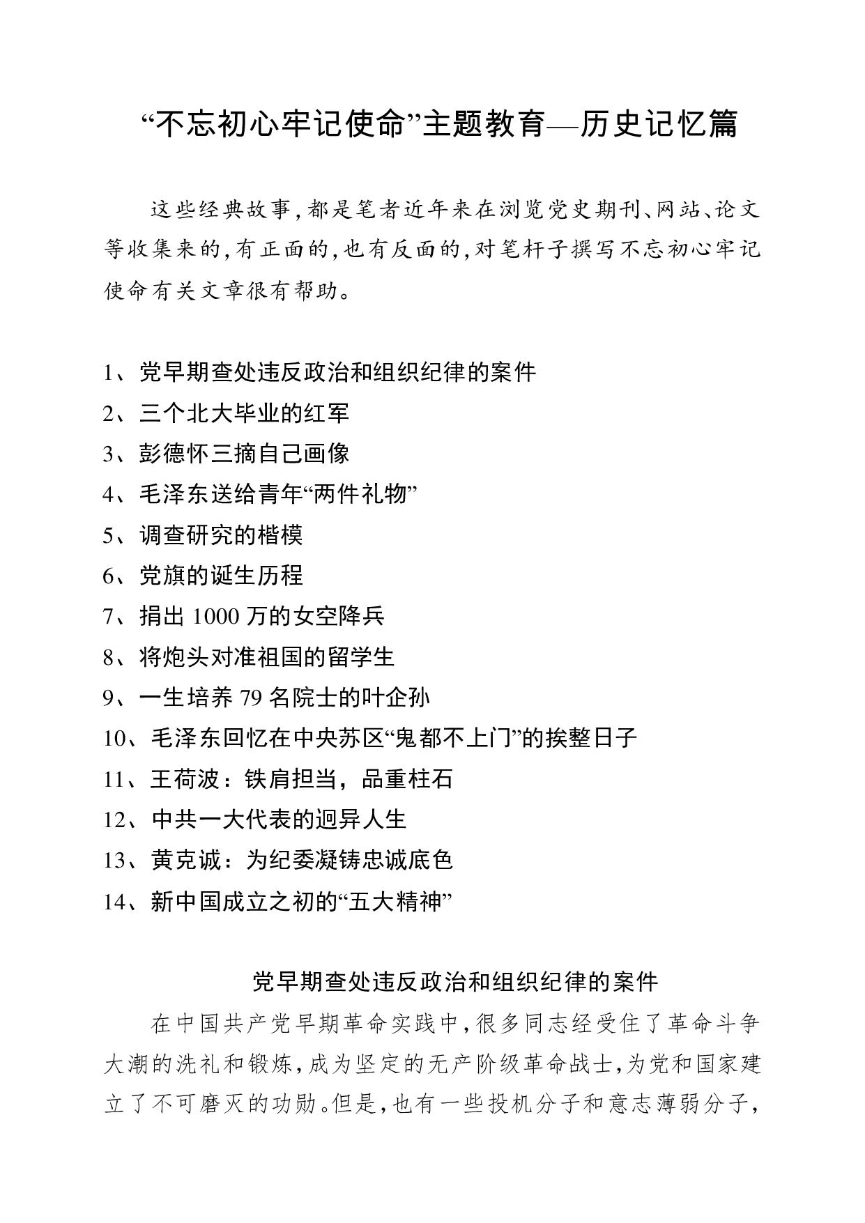 标题:【写作素材】不忘初心牢记使命主题教育—历史记忆篇
