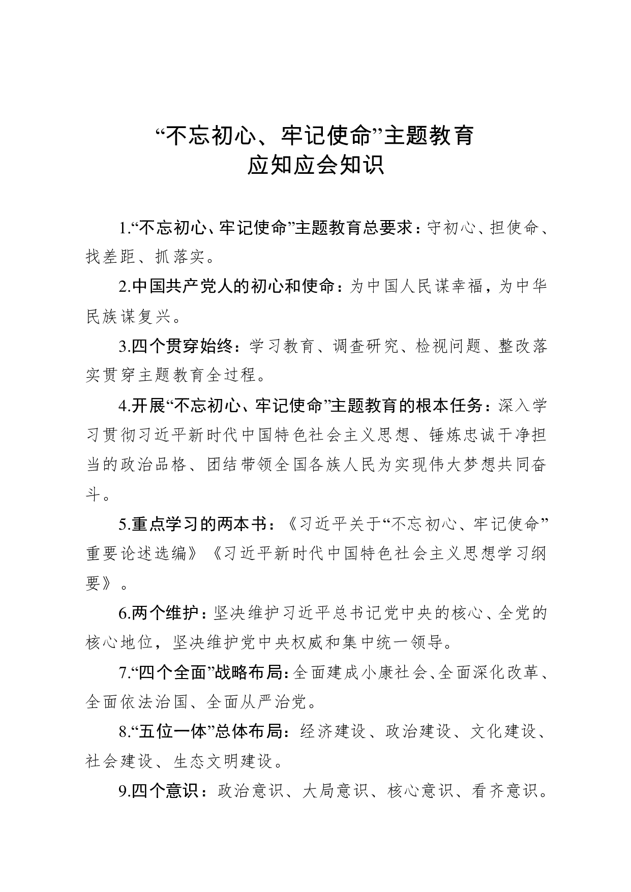 标题:【写作素材】不忘初心牢记使命主题教育应知应会知识