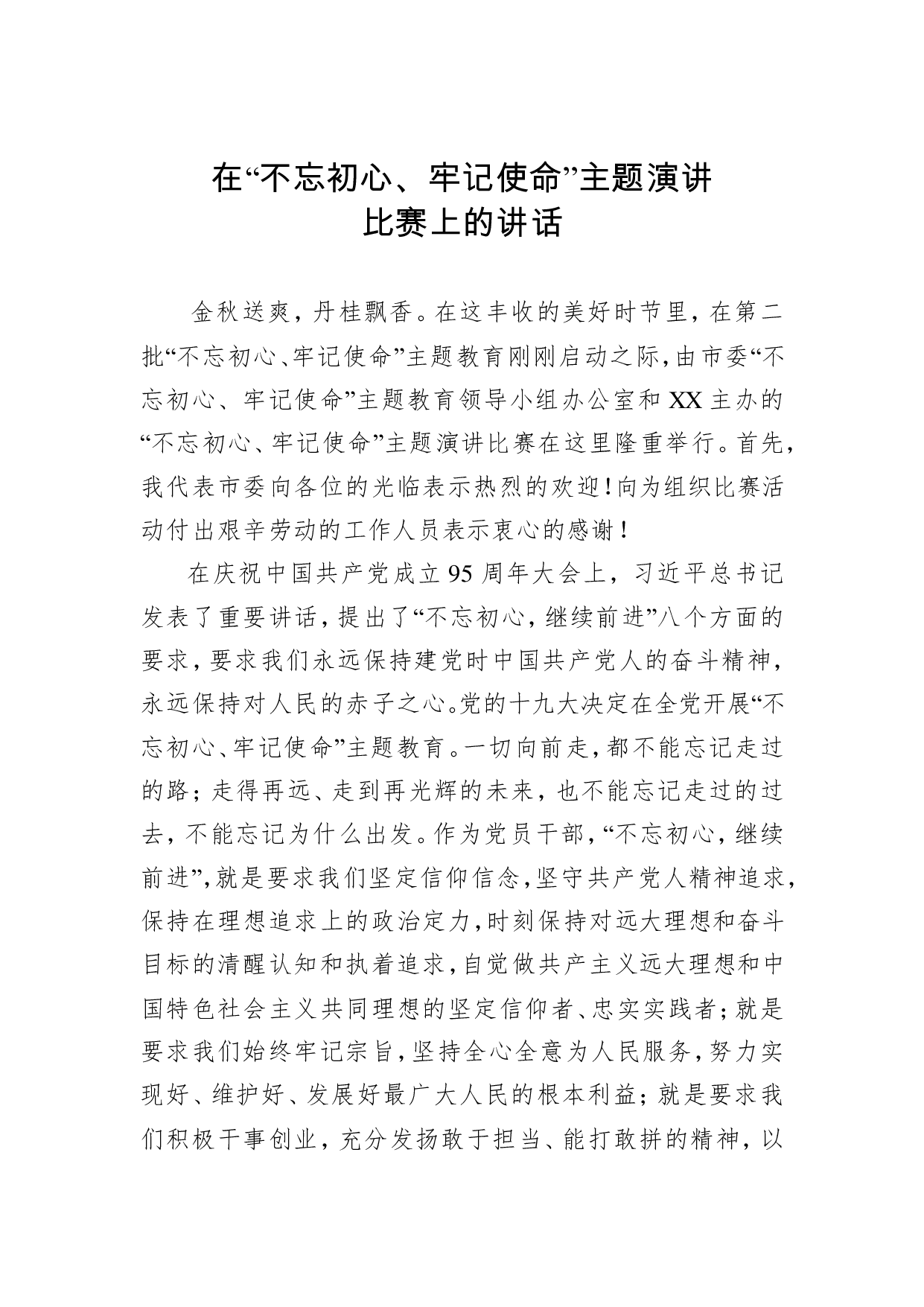 标题:在不忘初心牢记使命主题演讲比赛上的讲话