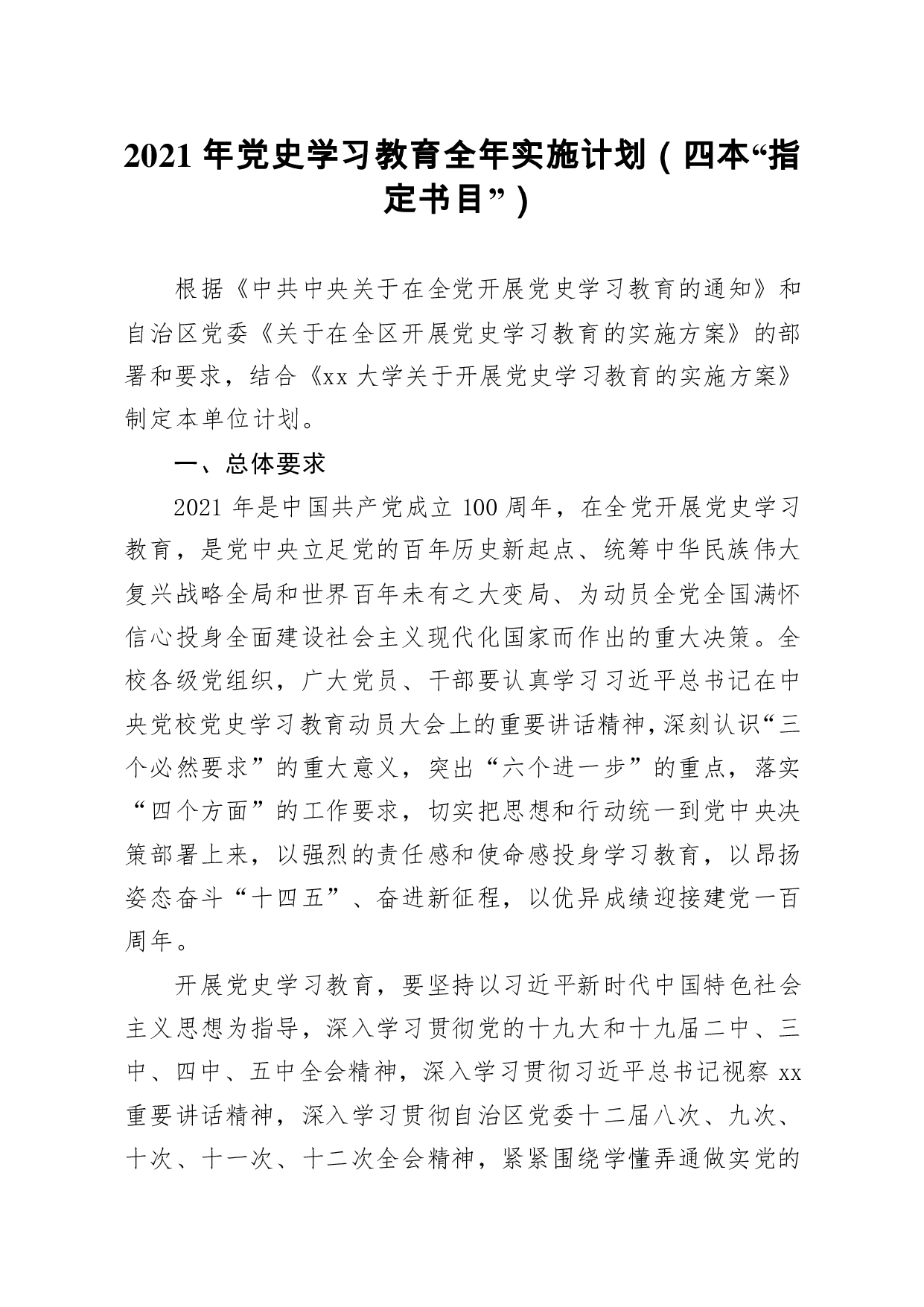 标题:2021年党史学习教育全年实施计划四本指定书目