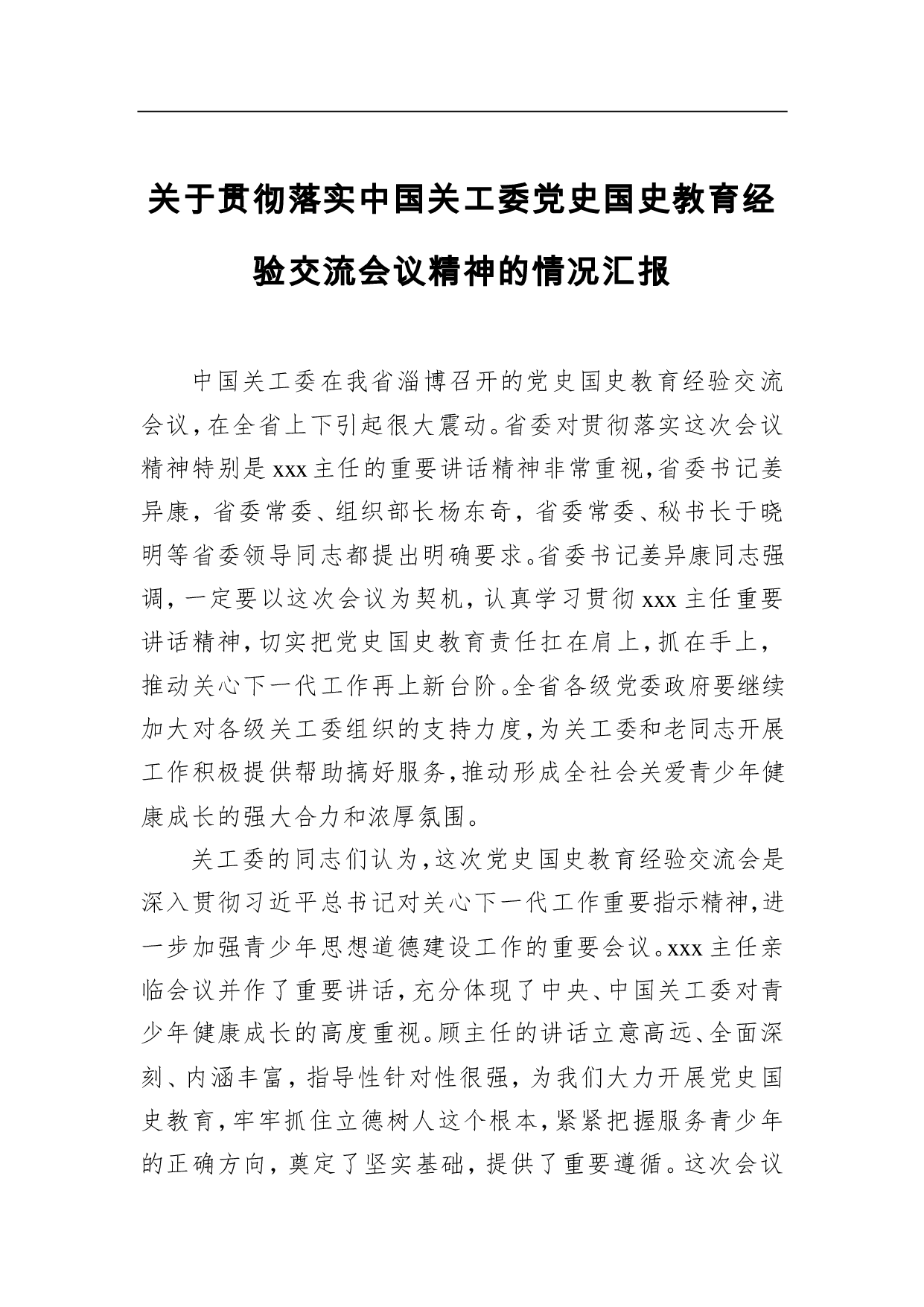标题:关于贯彻落实中国关工委党史国史教育经验交流会议精神的情况汇报