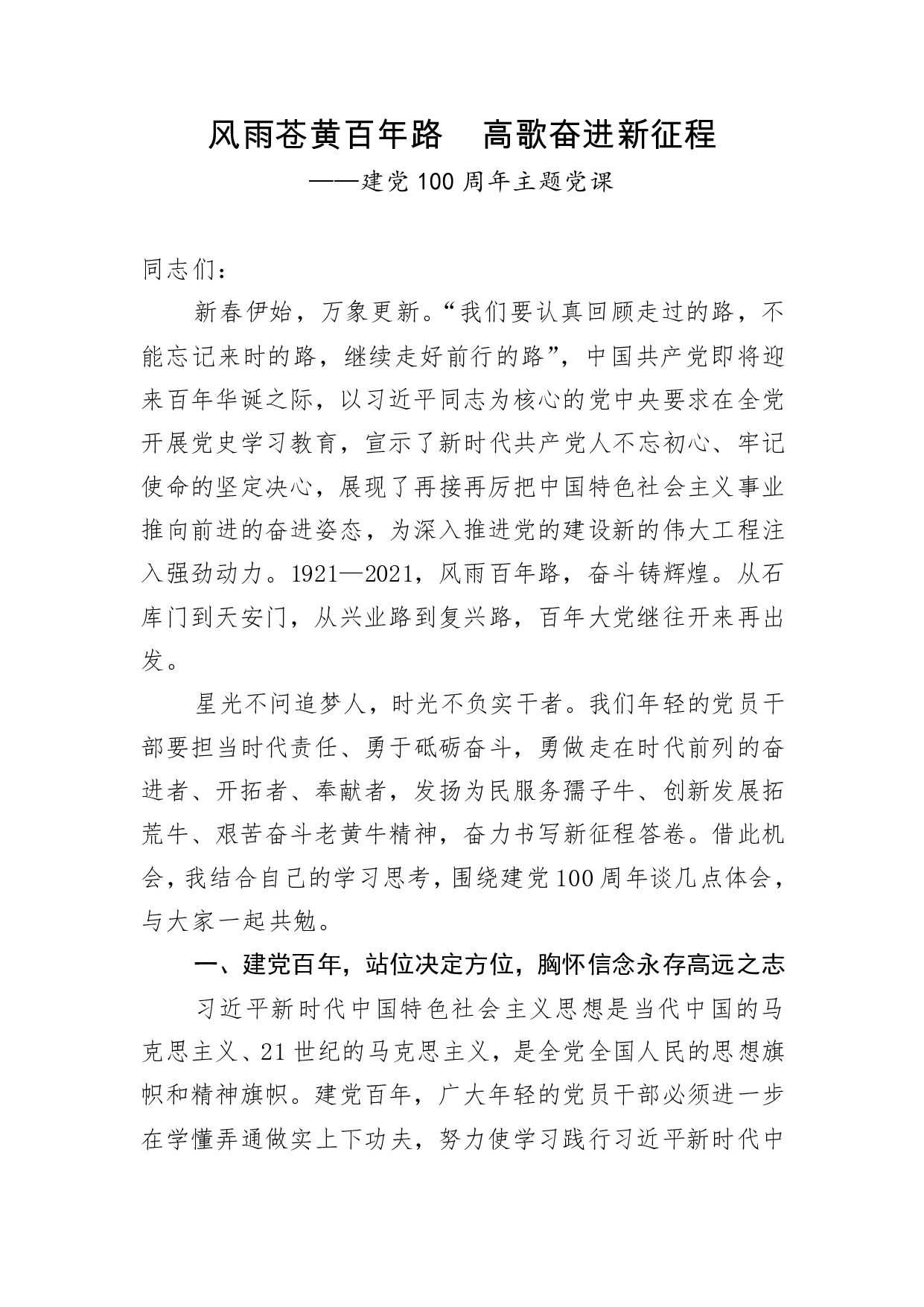 标题:建党100周年主题党课