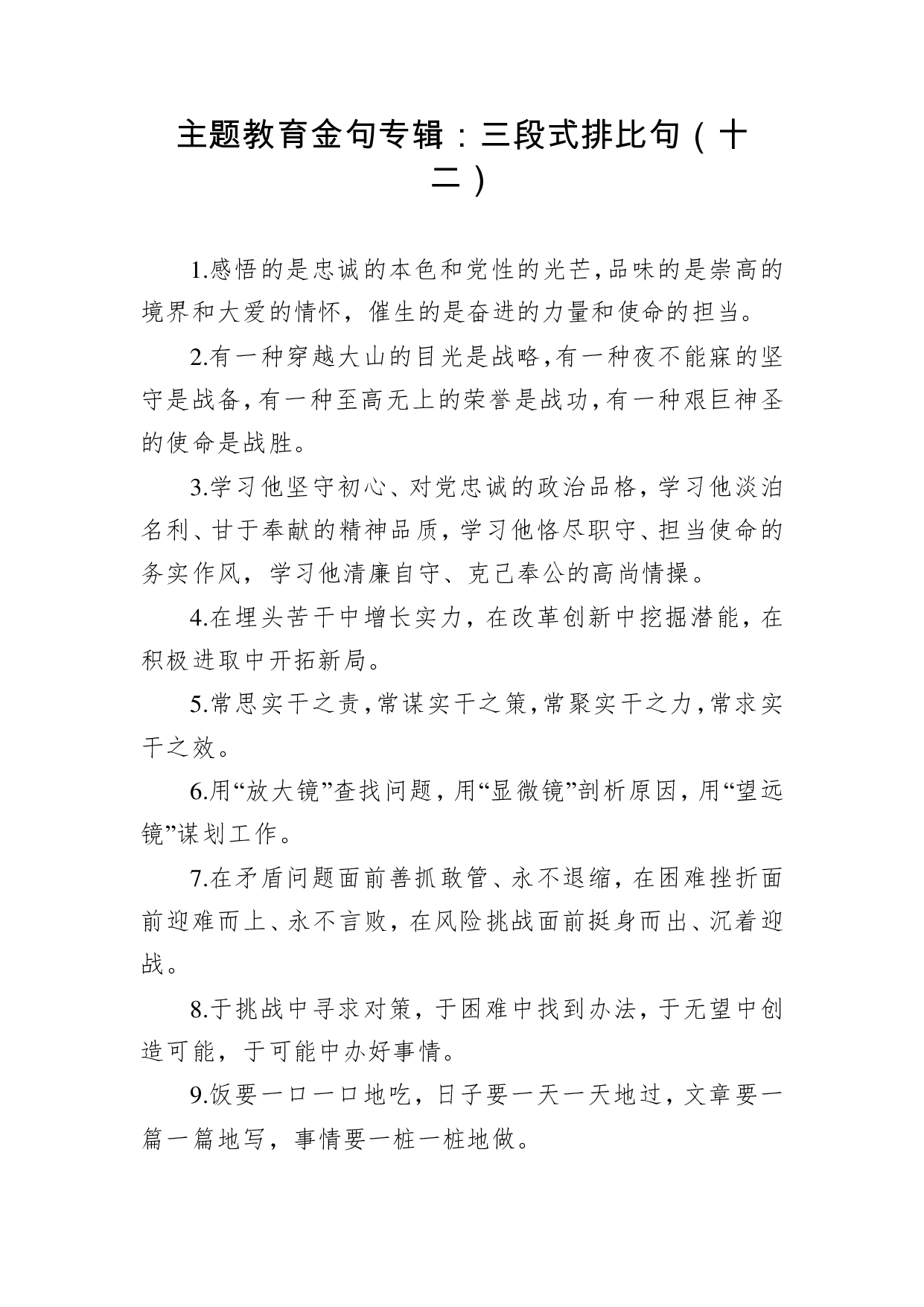 标题:【写作素材 】主题教育金句专辑三段式排比句