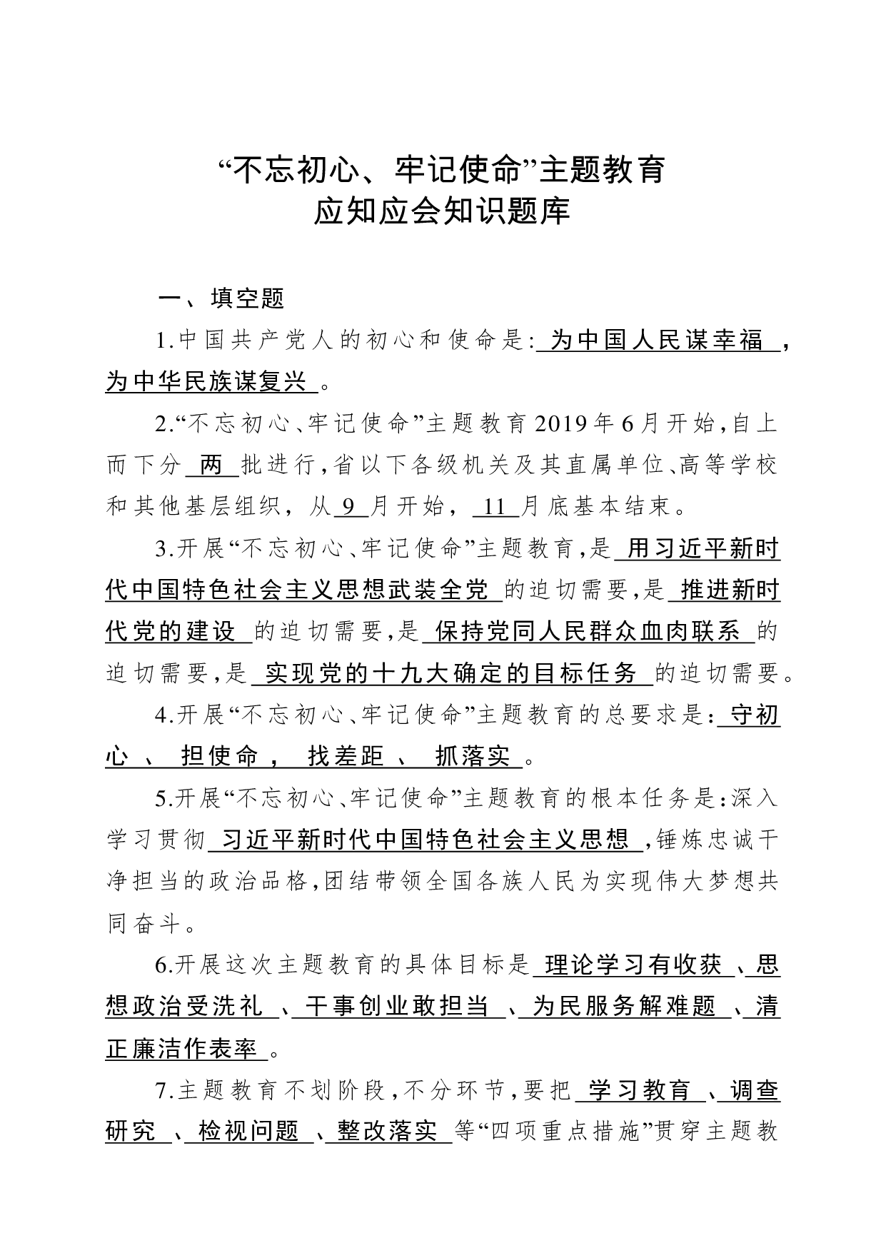 标题:【写作素材】不忘初心牢记使命主题教育应知应会知识题库