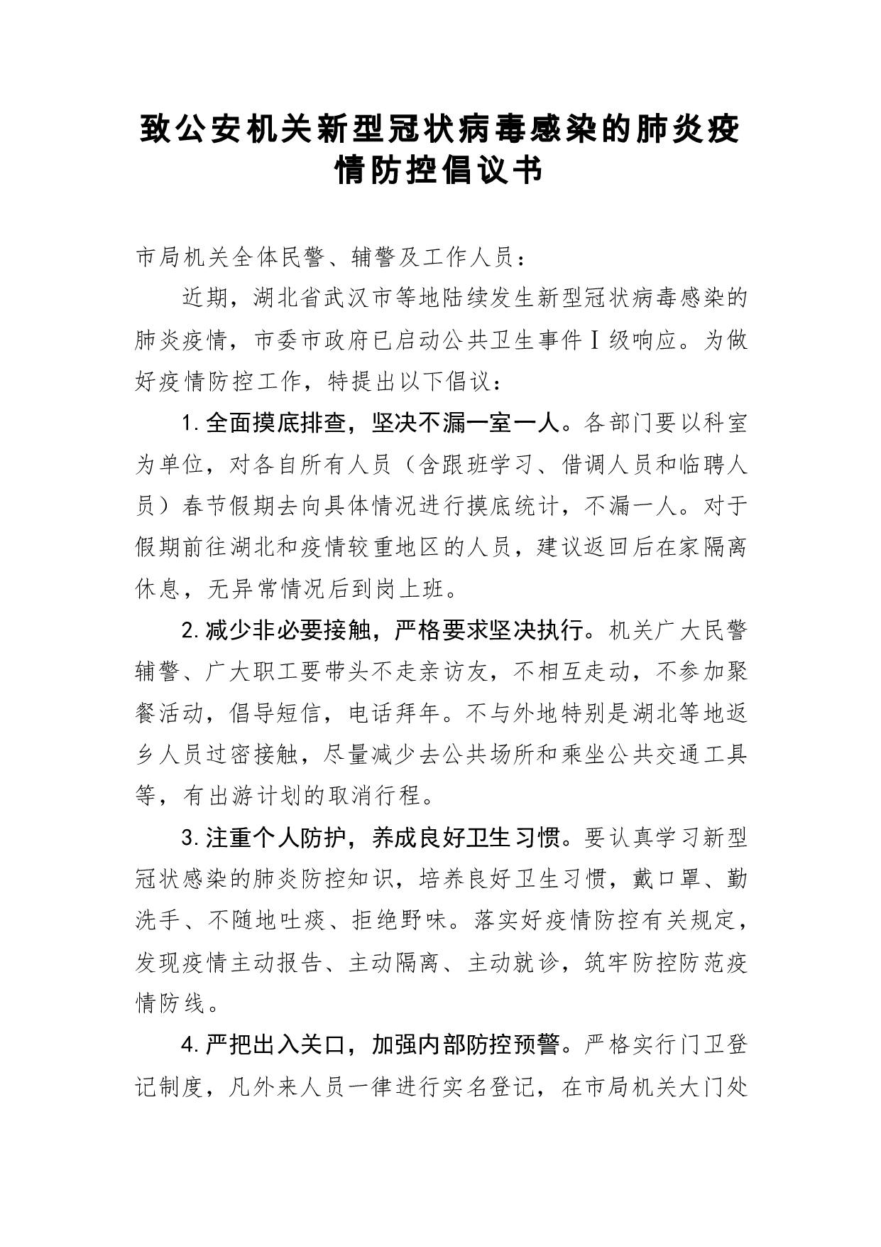 标题:笔友分享致公安机关新型冠状病毒感染的肺炎疫情防控倡议书