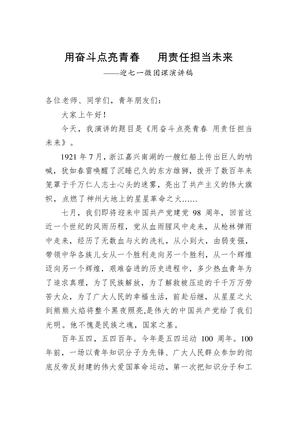 标题:奋斗点亮青春责任担当未来迎七一微团课演讲稿