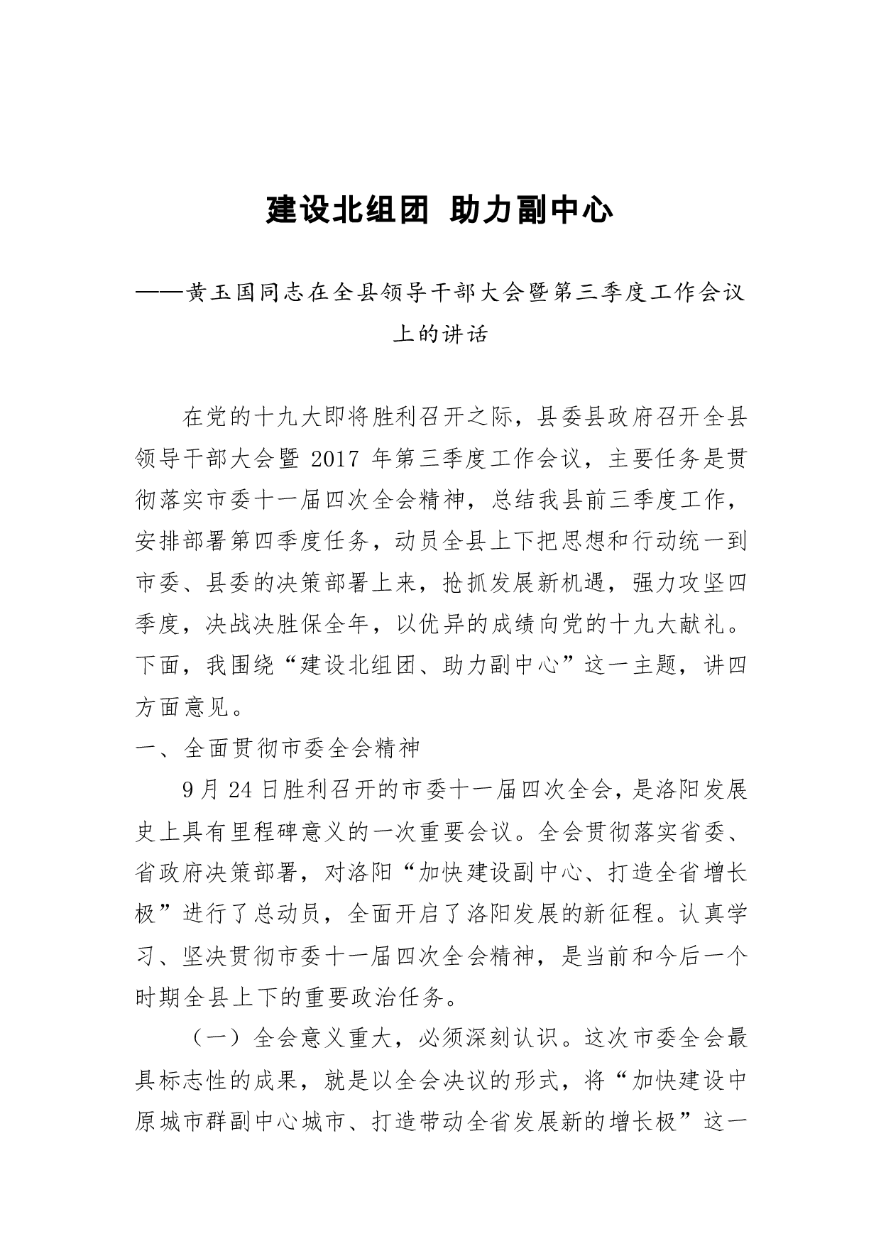 标题:黄玉国同志:在全县领导干部大会暨第三季度工作会议上的讲话