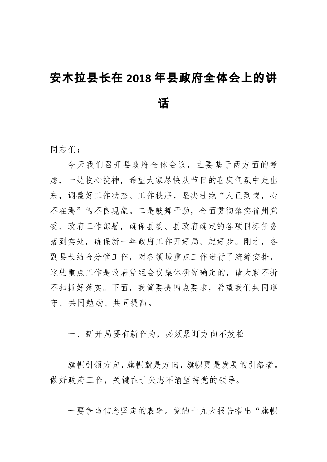 标题:安木拉县长:在2018年县政府全体会上的讲话