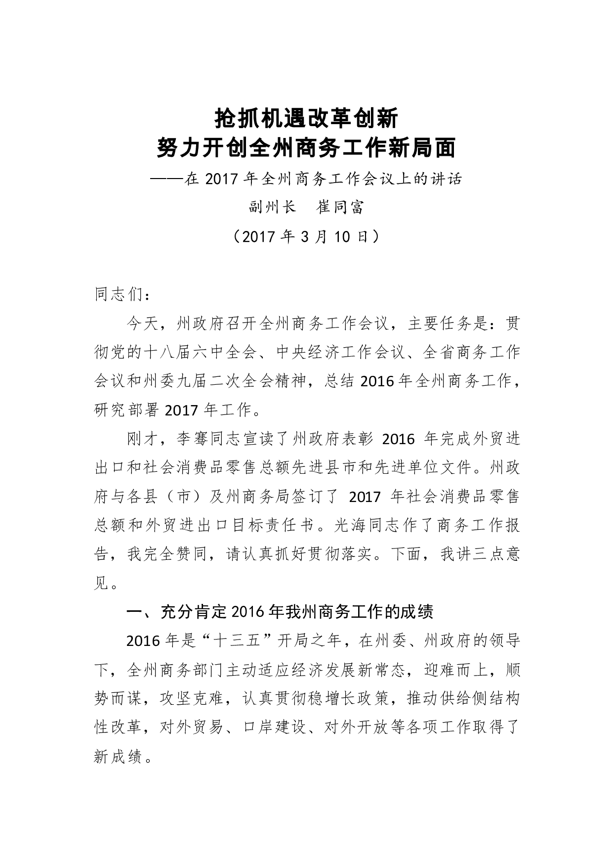 标题:崔同富:抢抓机遇改革创新努力开创全州商务工作新局面