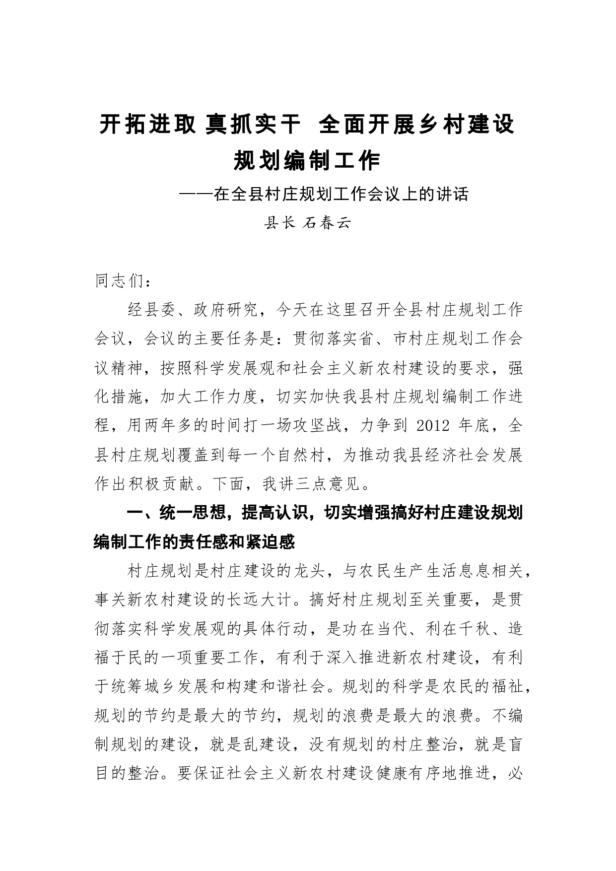 标题:中共澜沧县委副书记石春云:开拓进取真抓实干全面开展乡村建设规划编制工作
