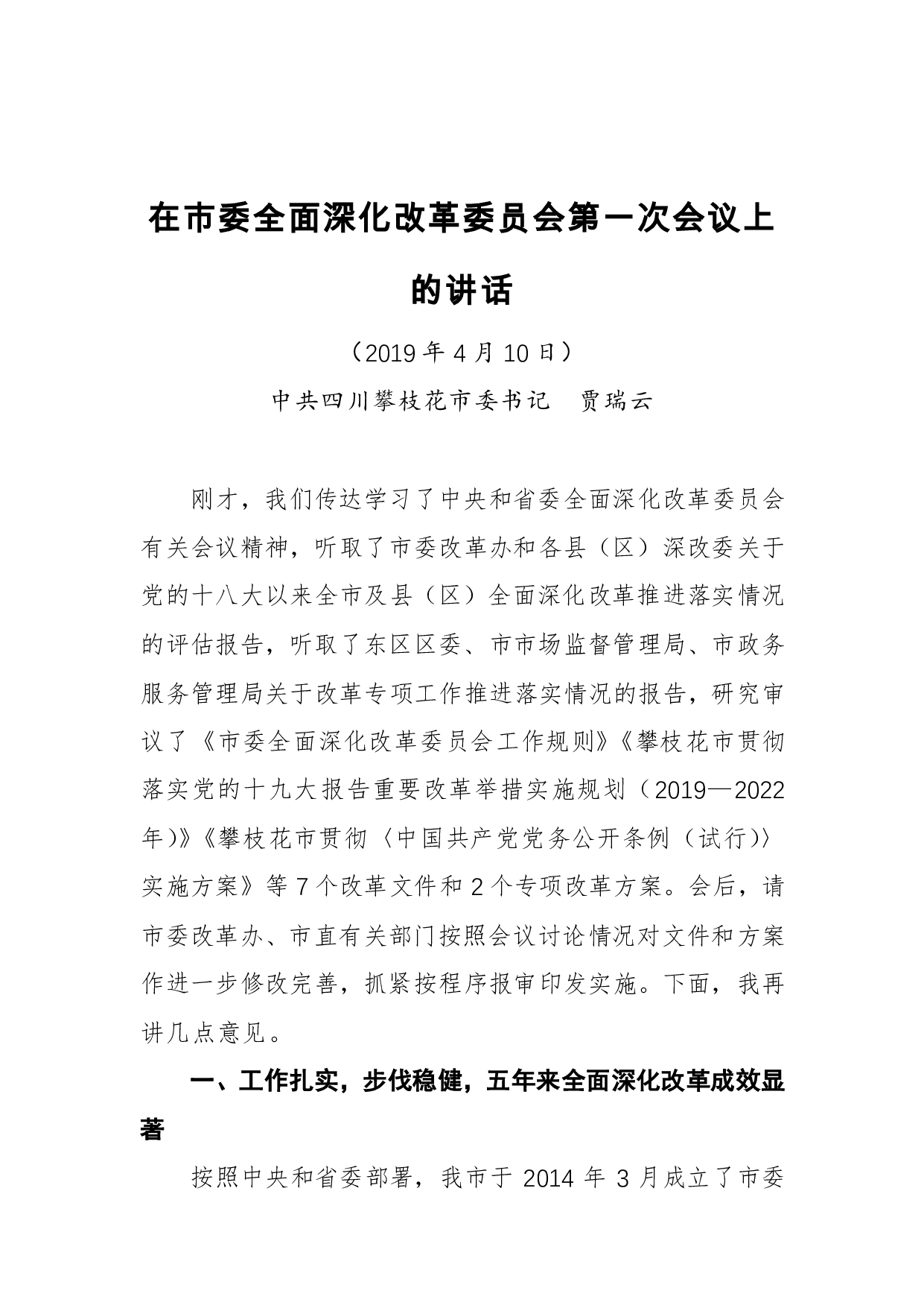 标题:中共四川攀枝花市委书记贾瑞云:在市委全面深化改革委员会第一次会议上的讲话