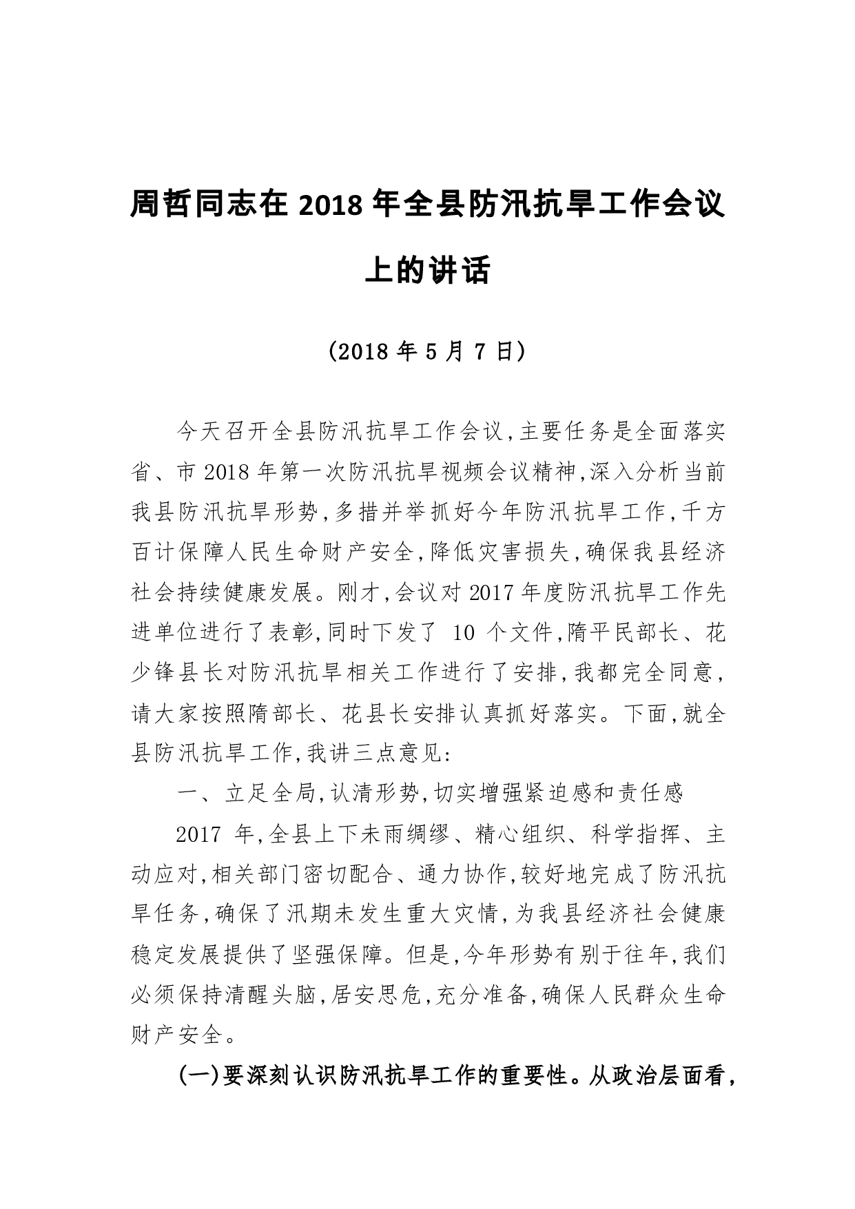 标题:周哲同志:在2018年全县防汛抗旱工作会议上的讲话