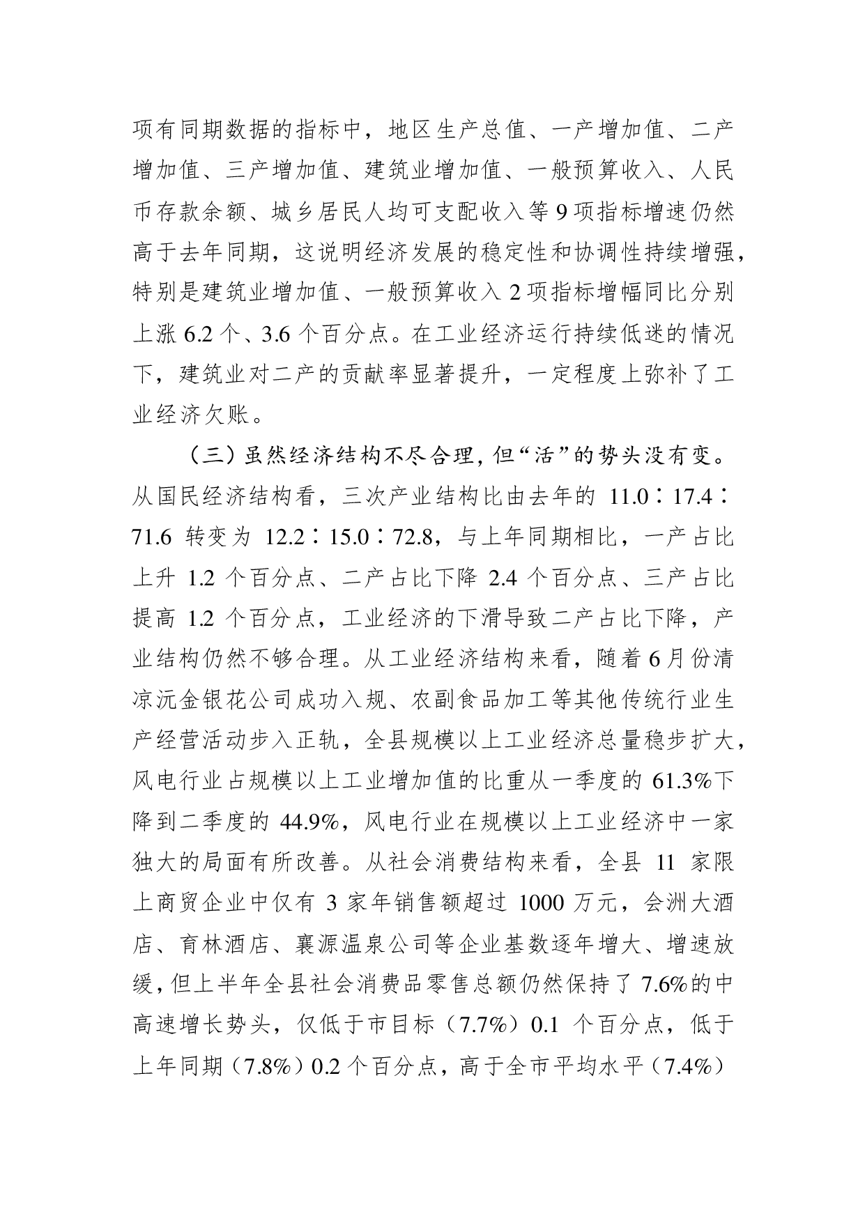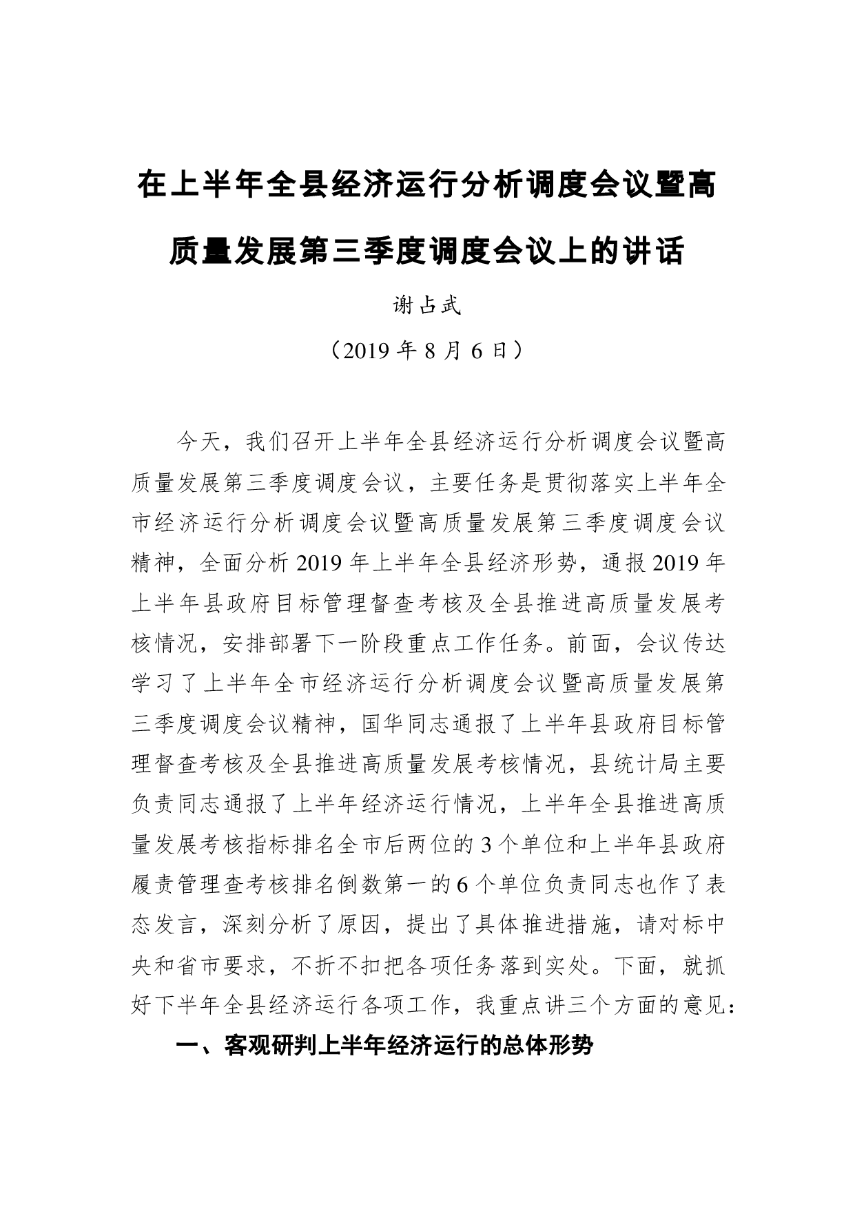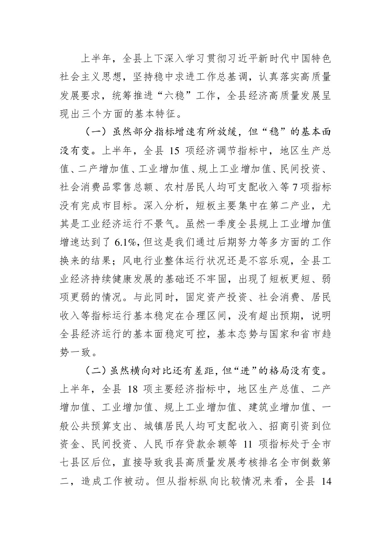 标题:县委副书记、县长在上半年全县经济运行分析调度会议暨高质量发展第三季度调度会议上的讲